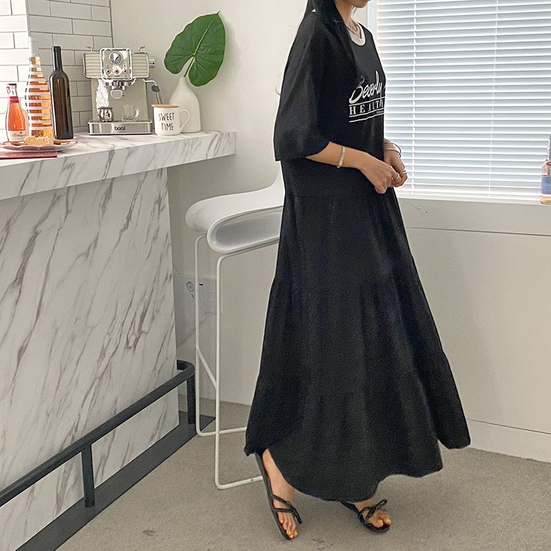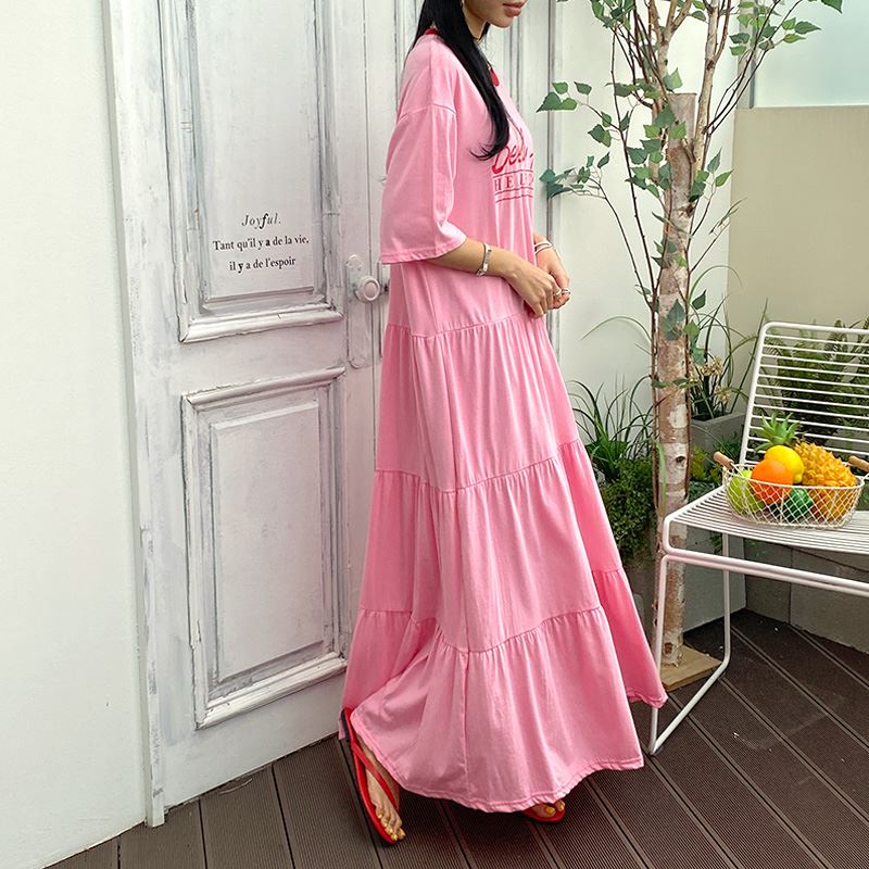 여자 플리츠 롱 원피스 레터링 데일리룩