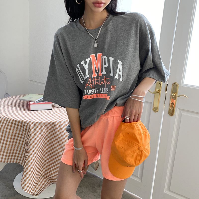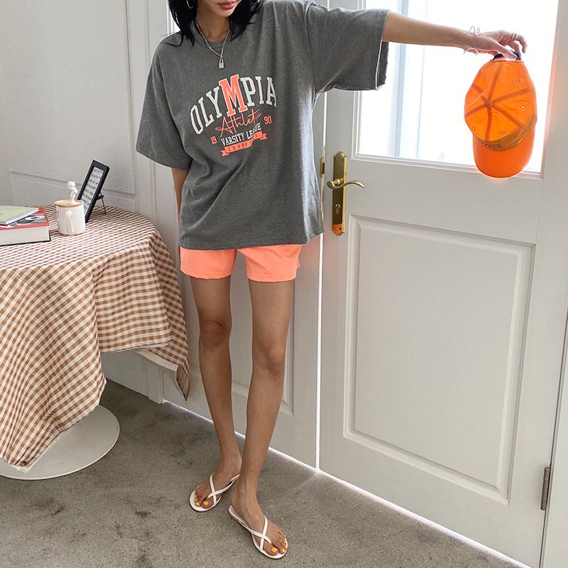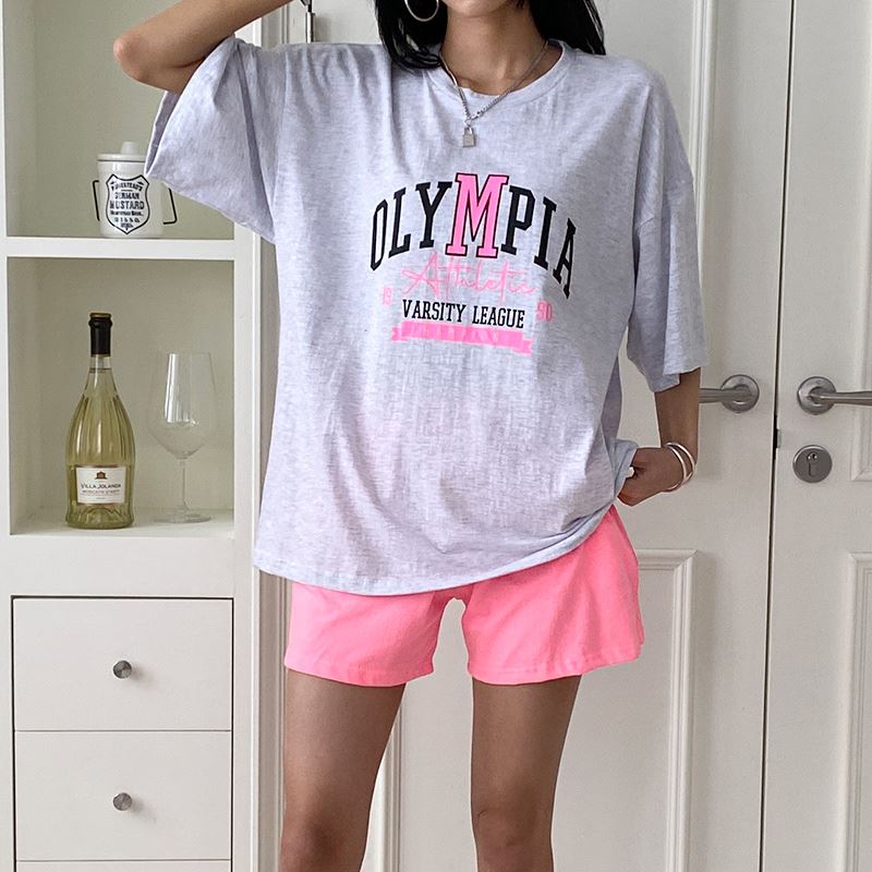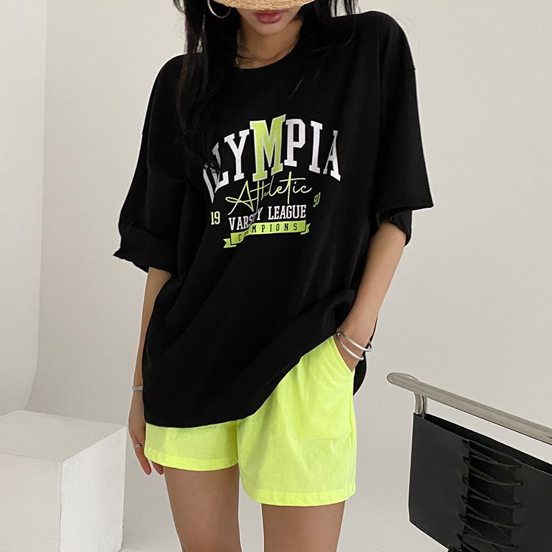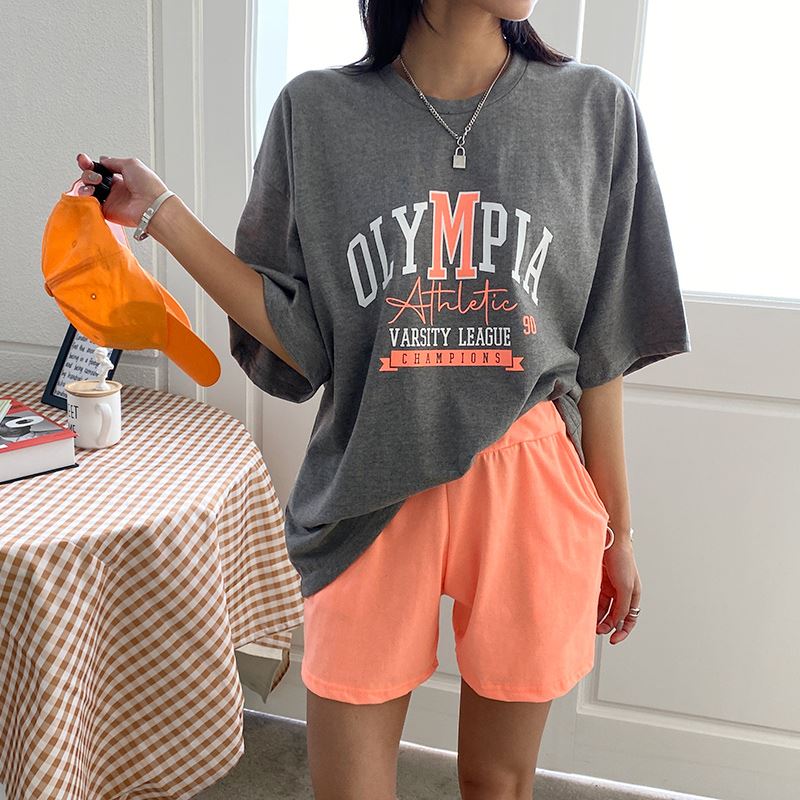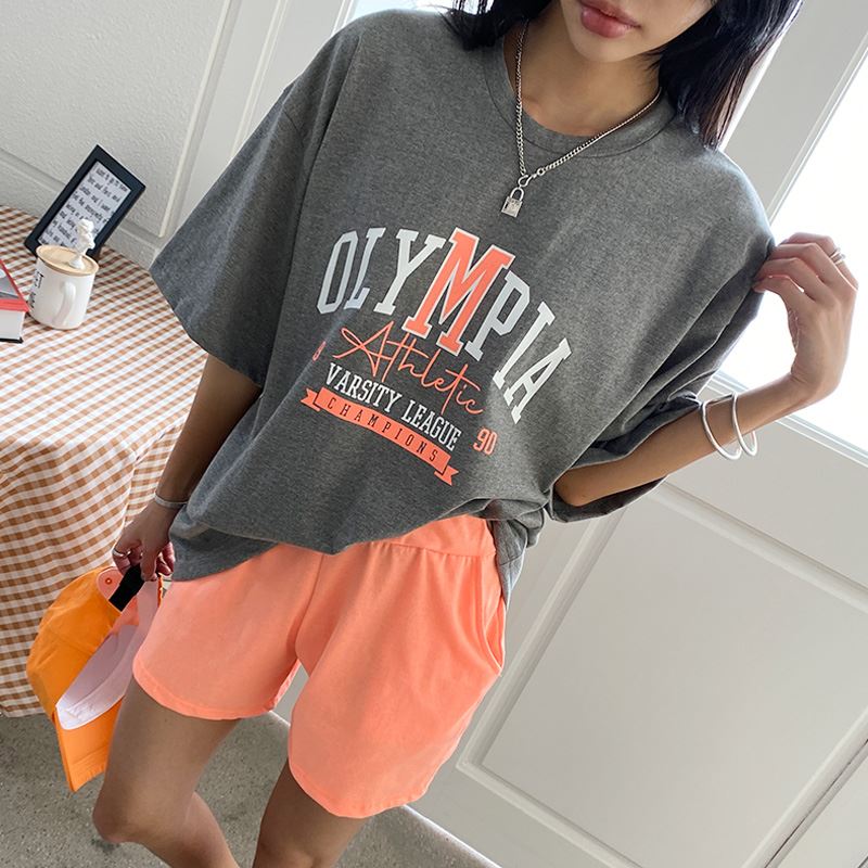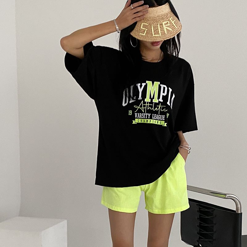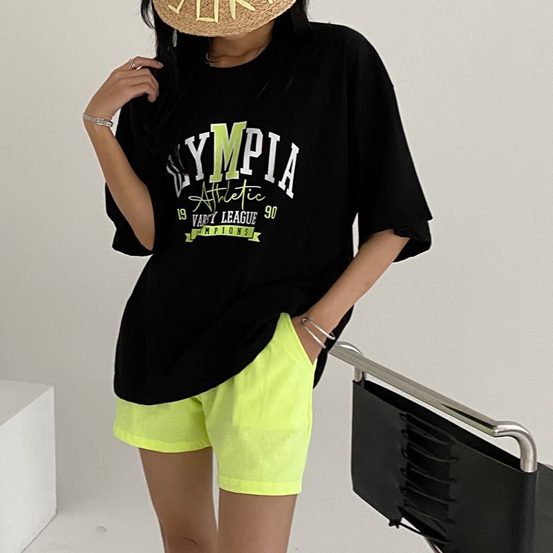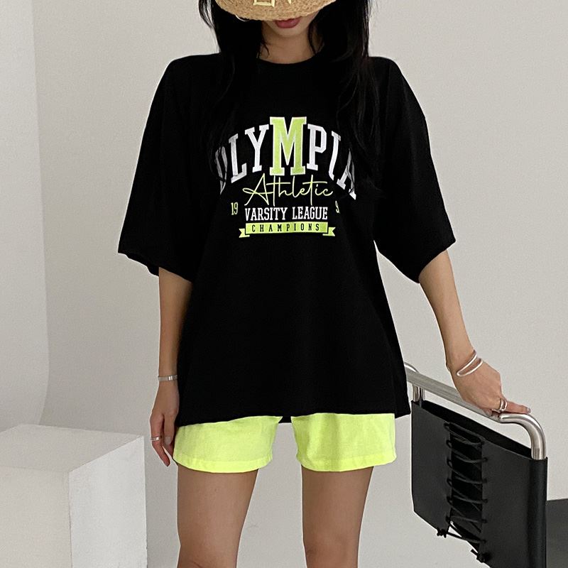 • 여자 반바지 여름 셋업 트레이닝 세트 형광 반팔티셔츠(올림형광-SET)