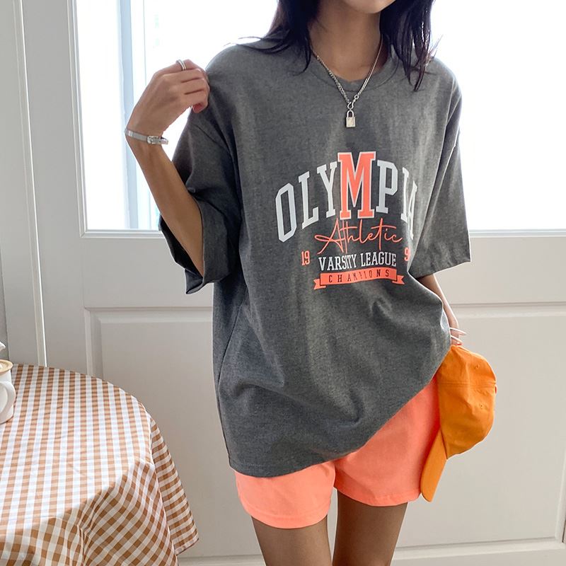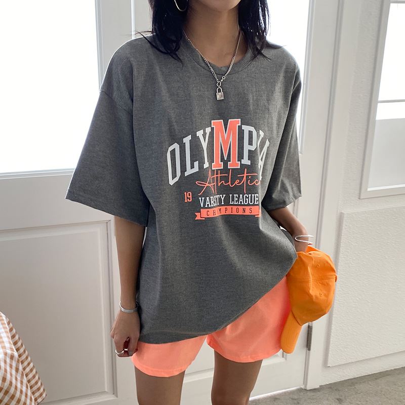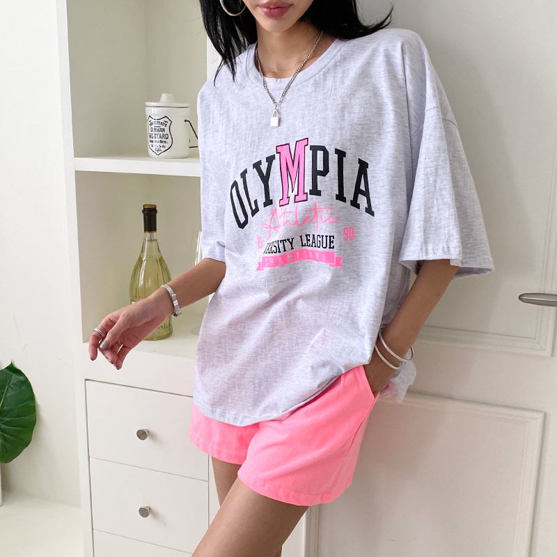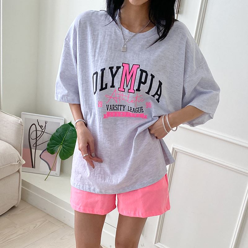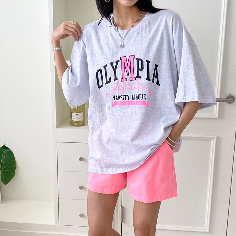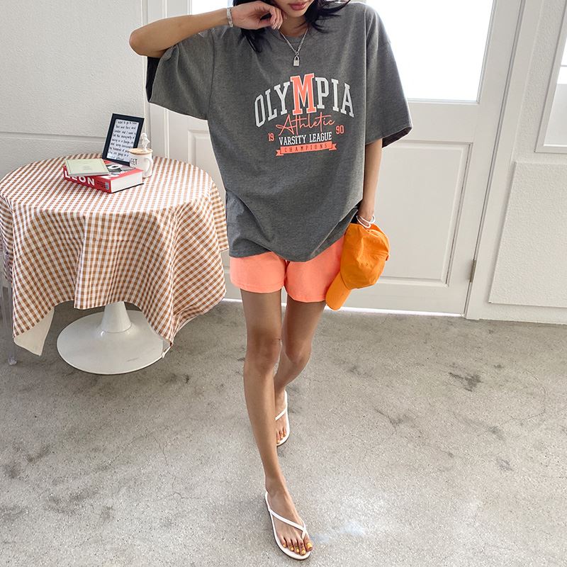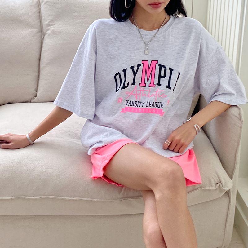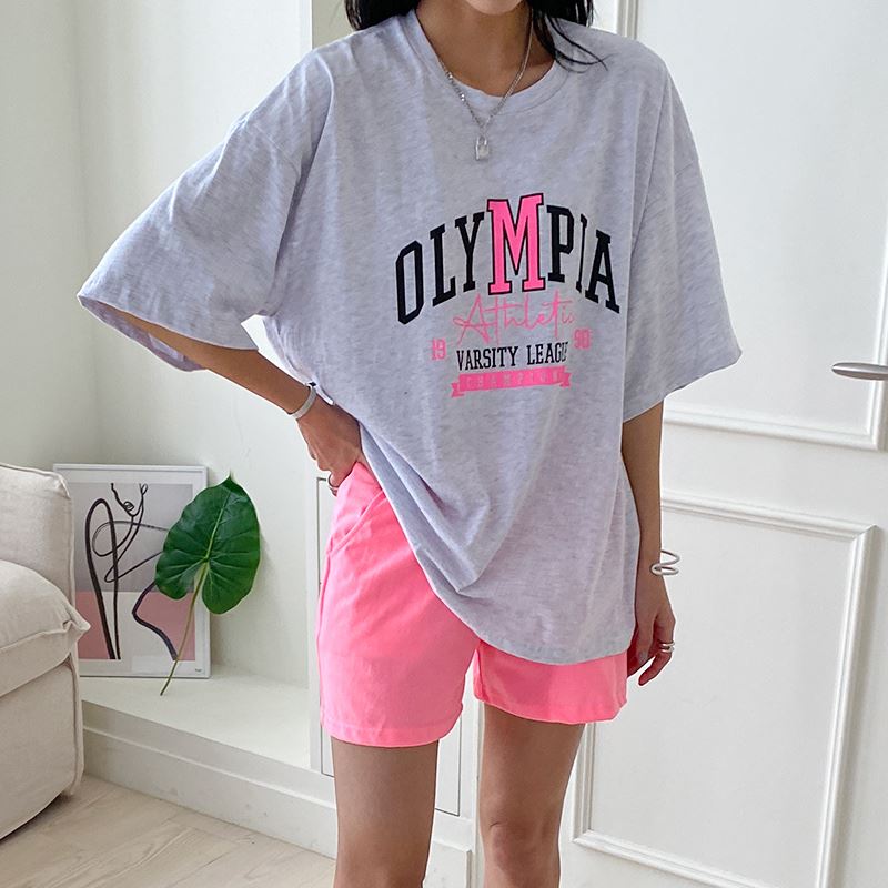 • 여자 반바지 여름 셋업 트레이닝 세트 형광 반팔티셔츠(올림형광-SET)