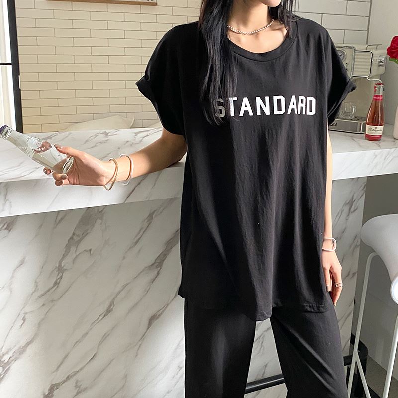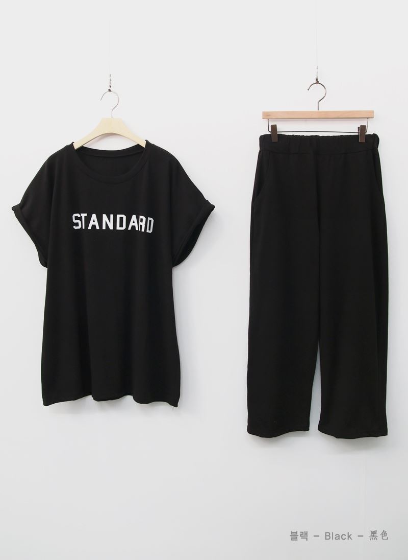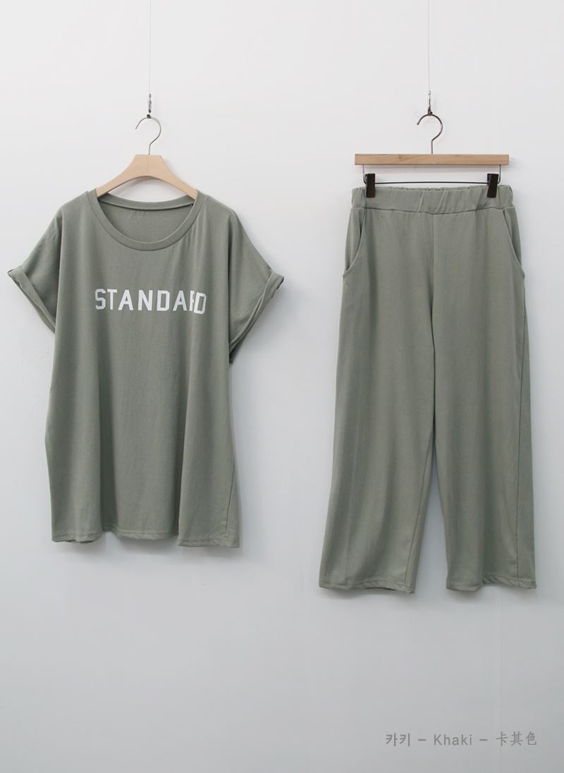 • 여성 빈티지 상하세트 롤업 반팔 밴딩 팬츠 편안한 코디(스탠롤업SET)