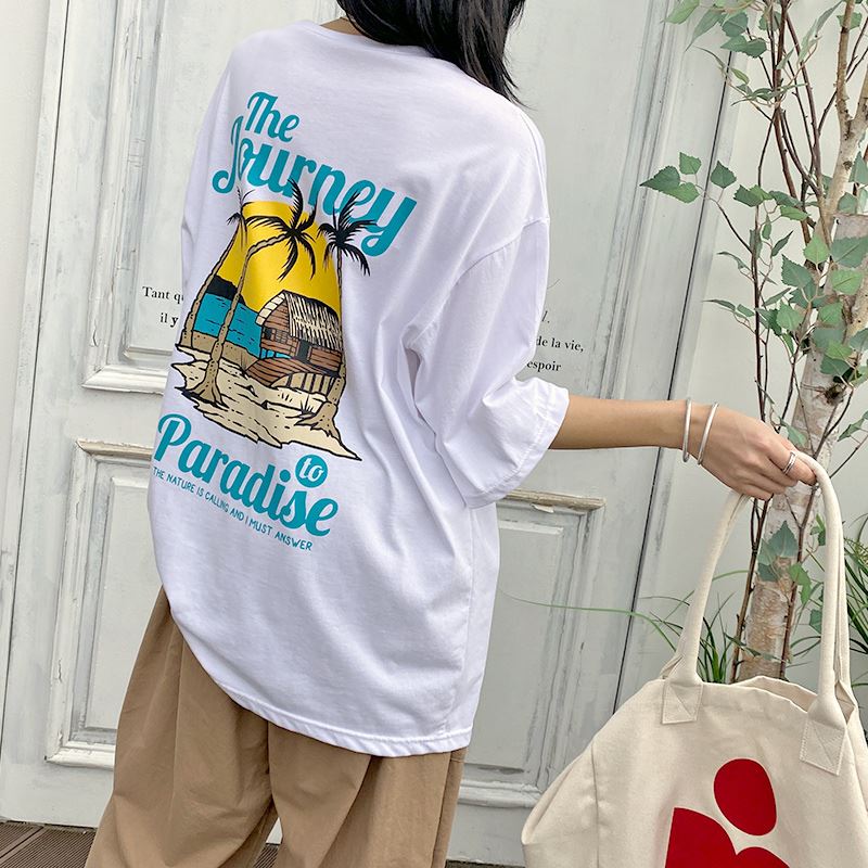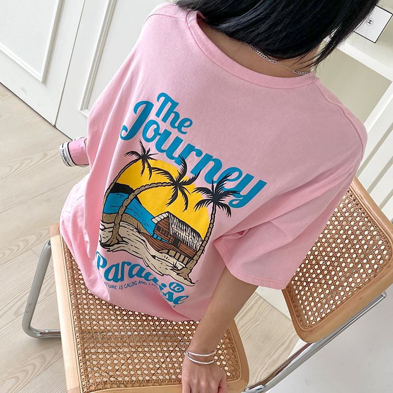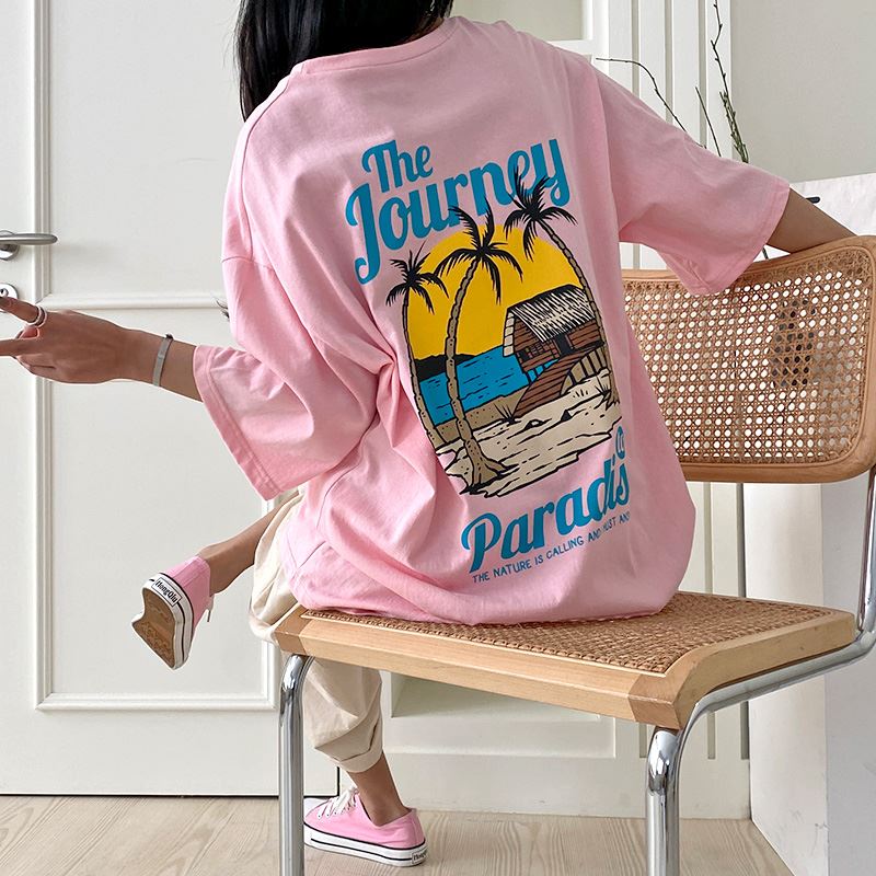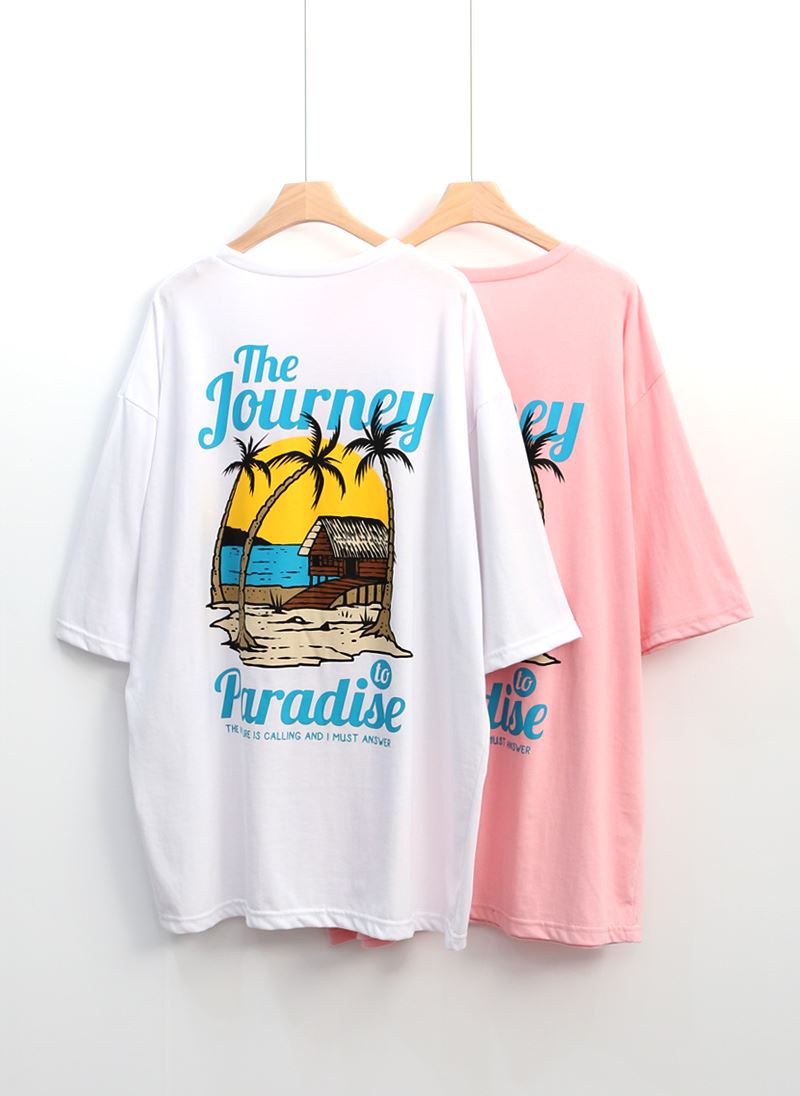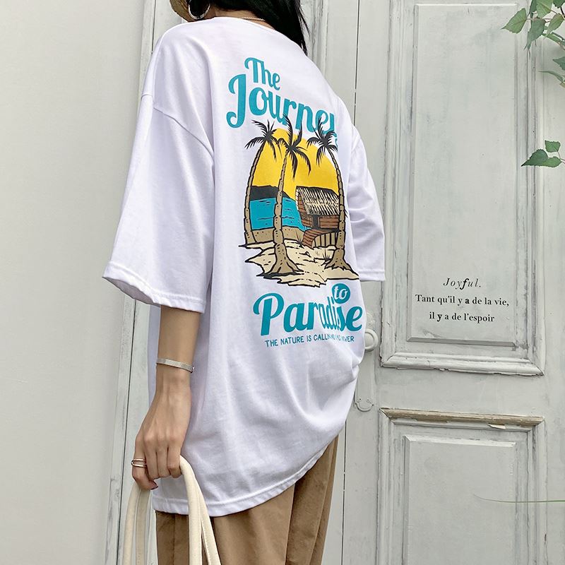 • 여성 여름 티셔츠 비치 반팔티 화와이안룩 그래픽(파라다이스-T)