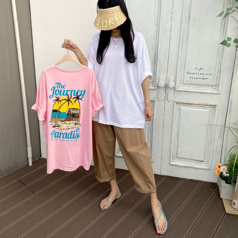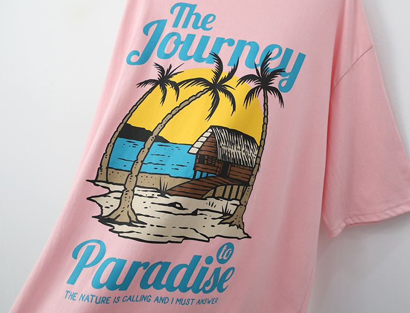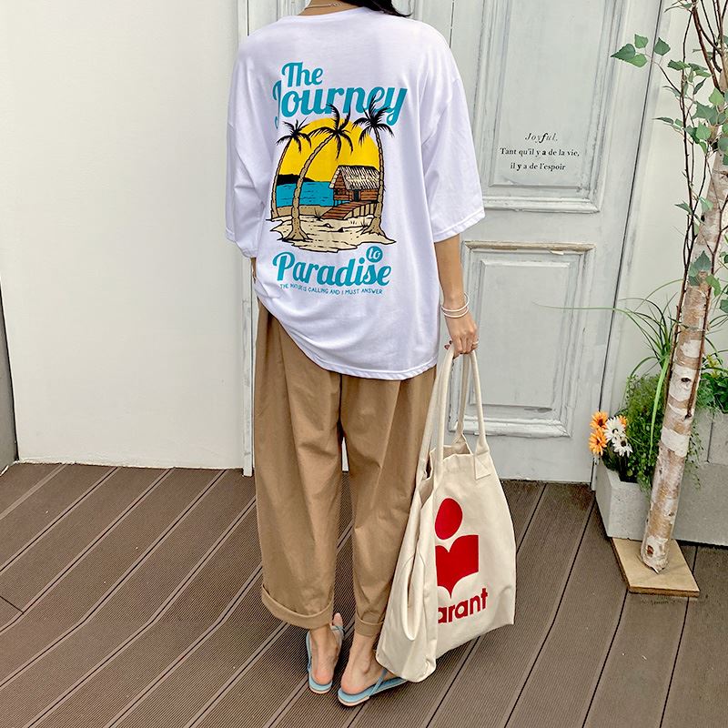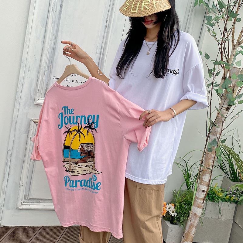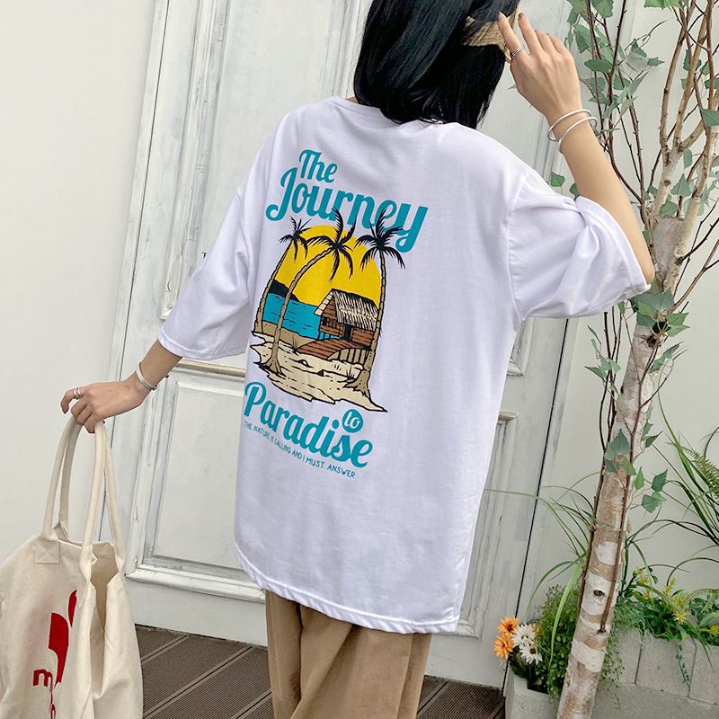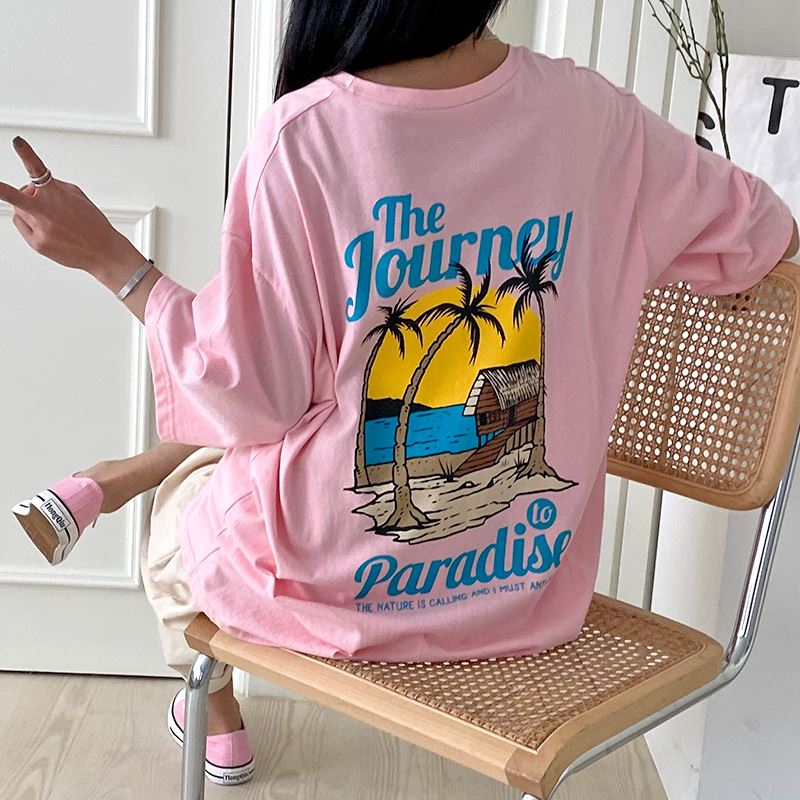 • 여성 여름 티셔츠 비치 반팔티 화와이안룩 그래픽(파라다이스-T)