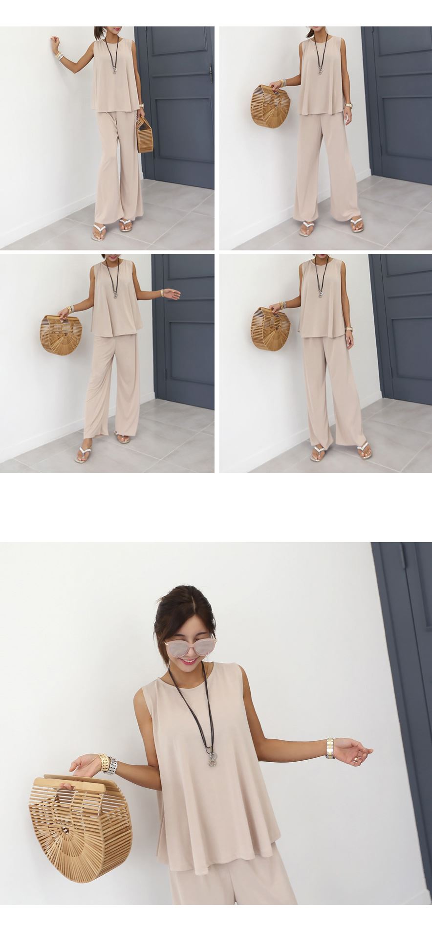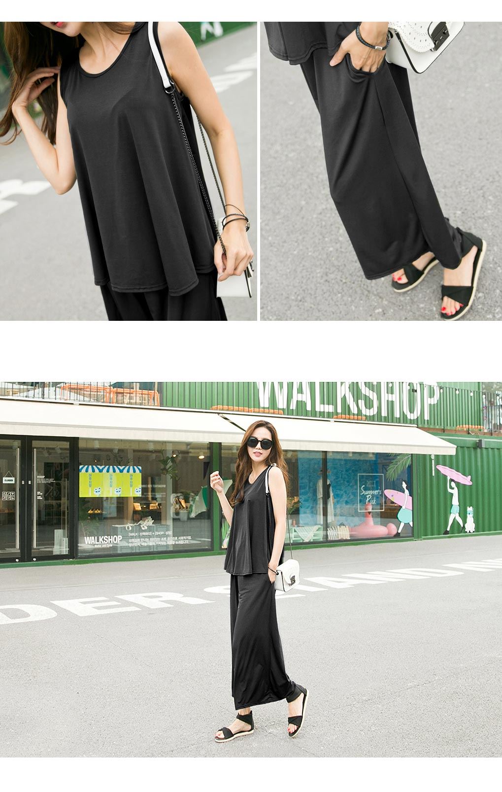| 치수 | 상의 총장 66cm/ 어깨 30.5cm/ 가슴 52cm/ 암홀 19cm/ 밑단 87cm 하의 총장 84cm/ 허리 29cm/ 힙 59cm/ 밑위 38cm/ 밑단 39cm/ 허벅지 37cm |