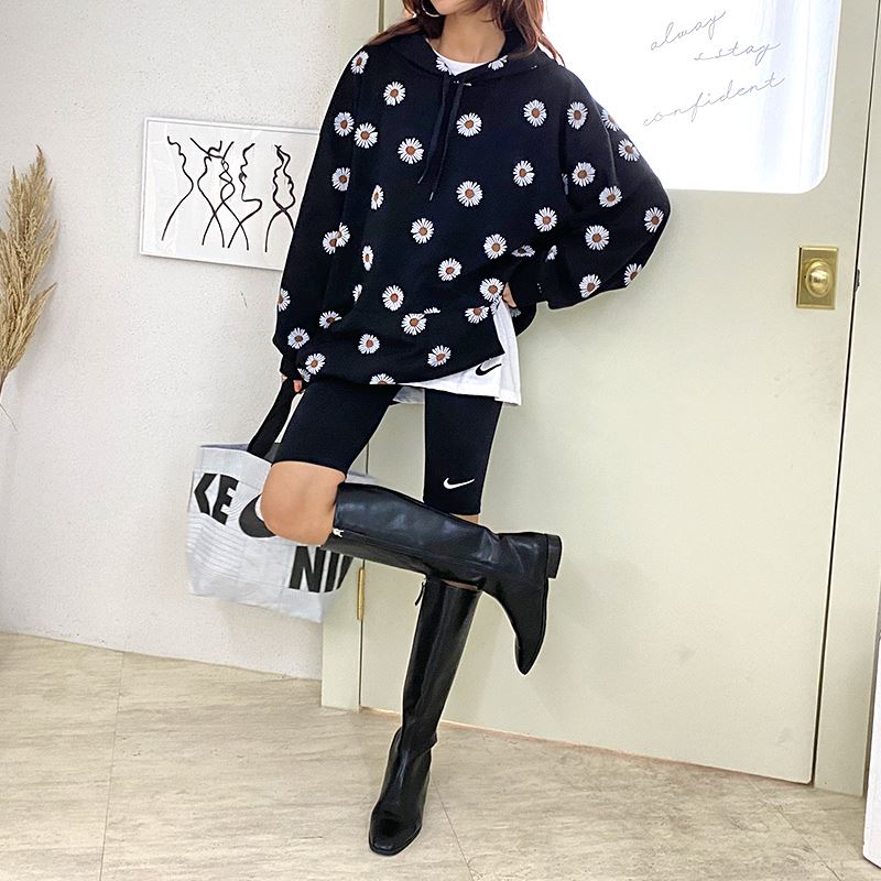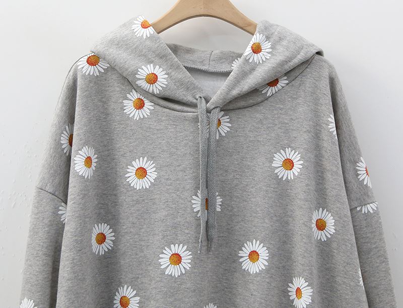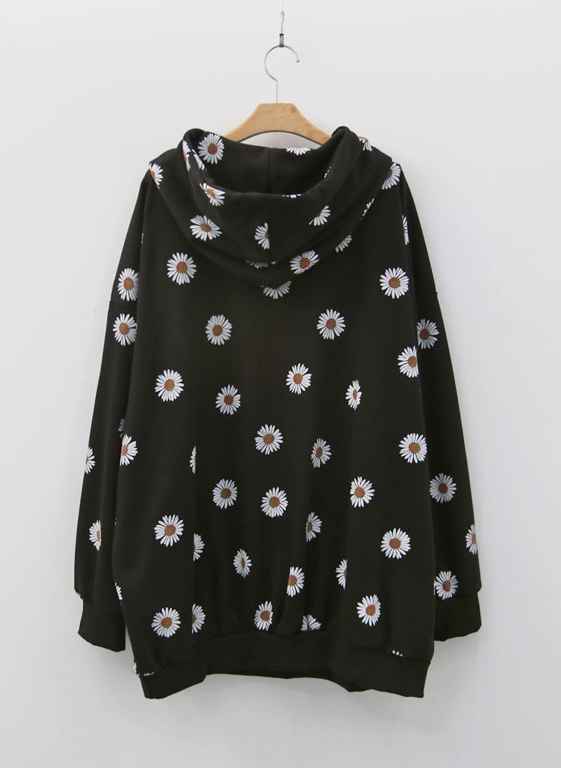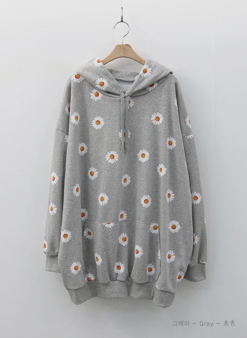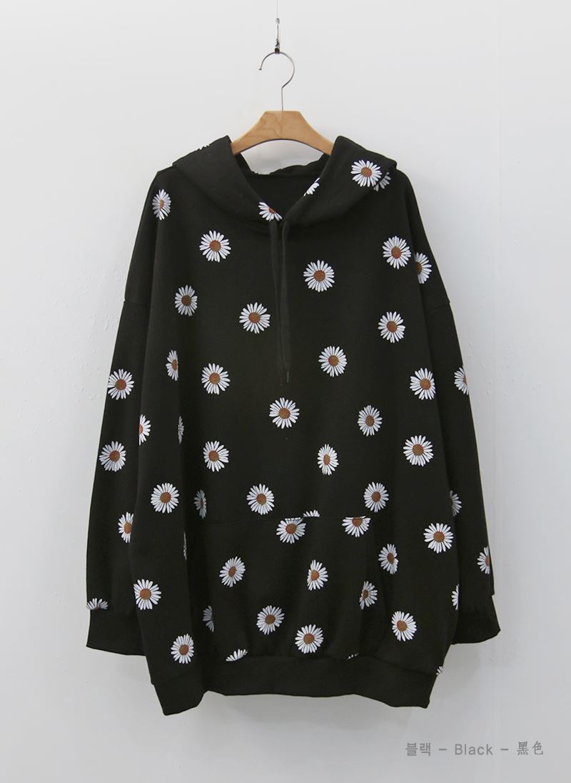 데일리로 입기 좋은 플라워 패턴의 후드 티셔츠를