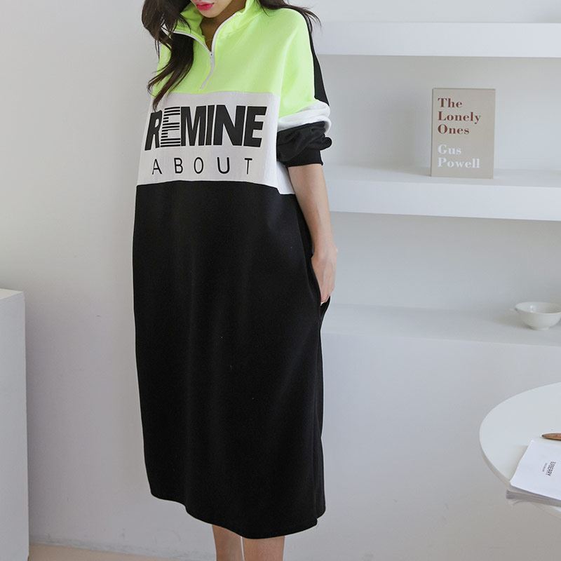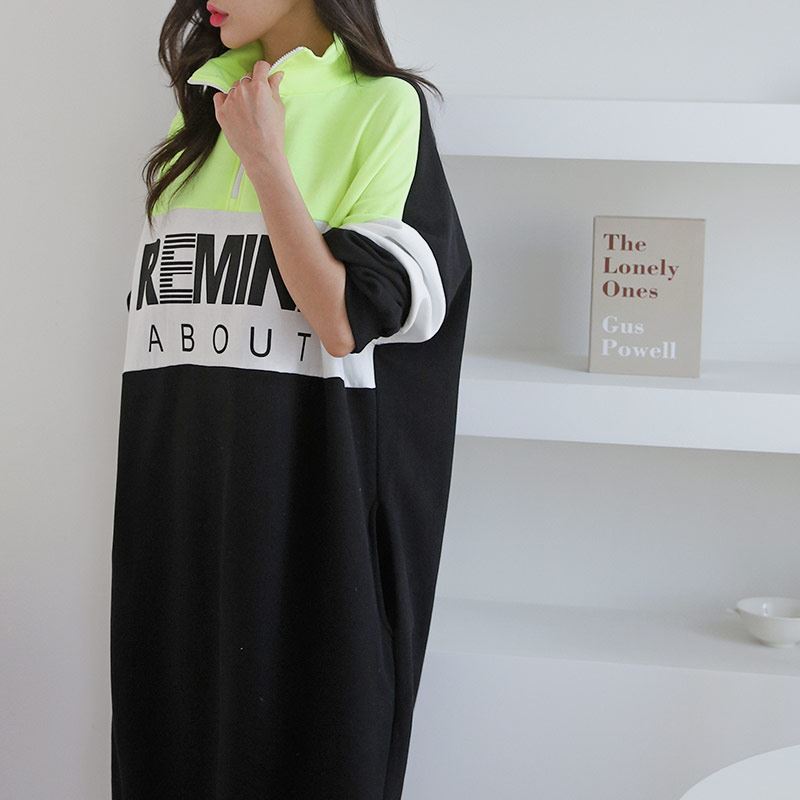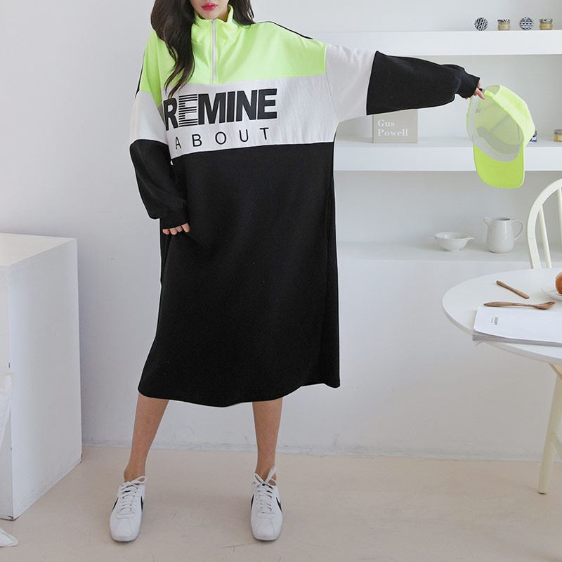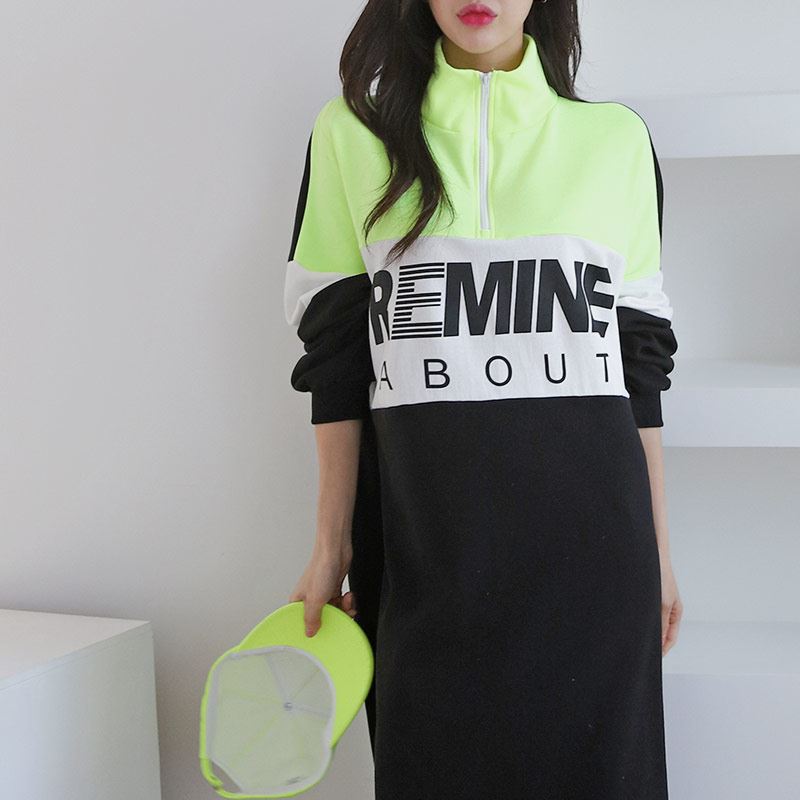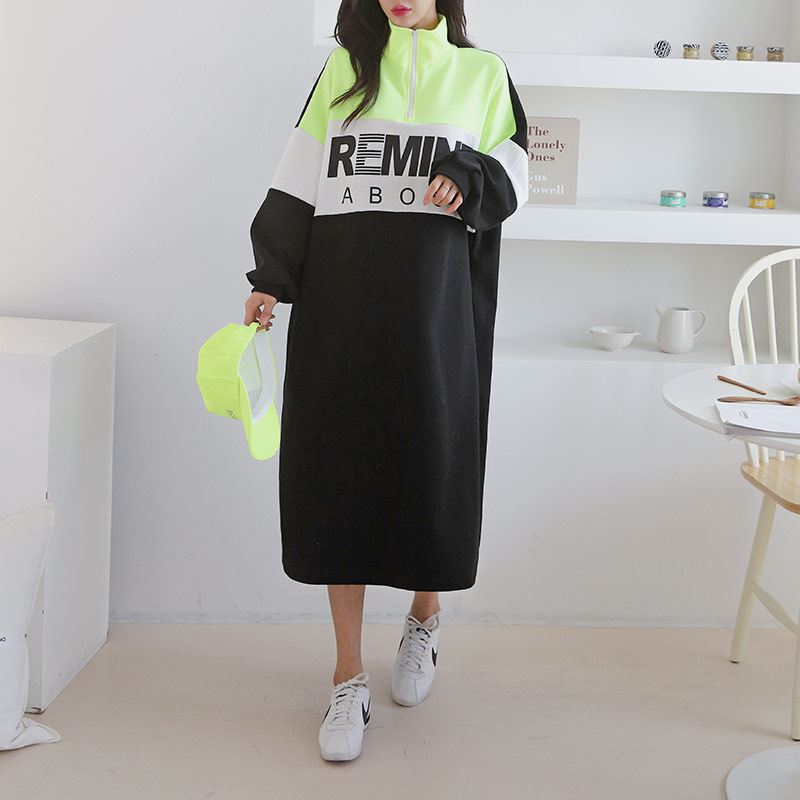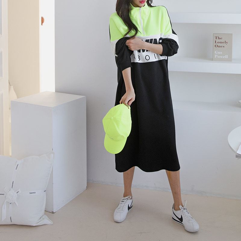 • 여성 가을 아노락 롱 원피스 형광 컬러