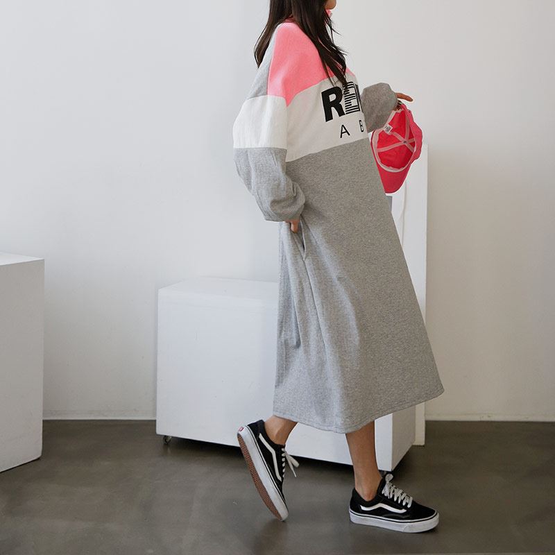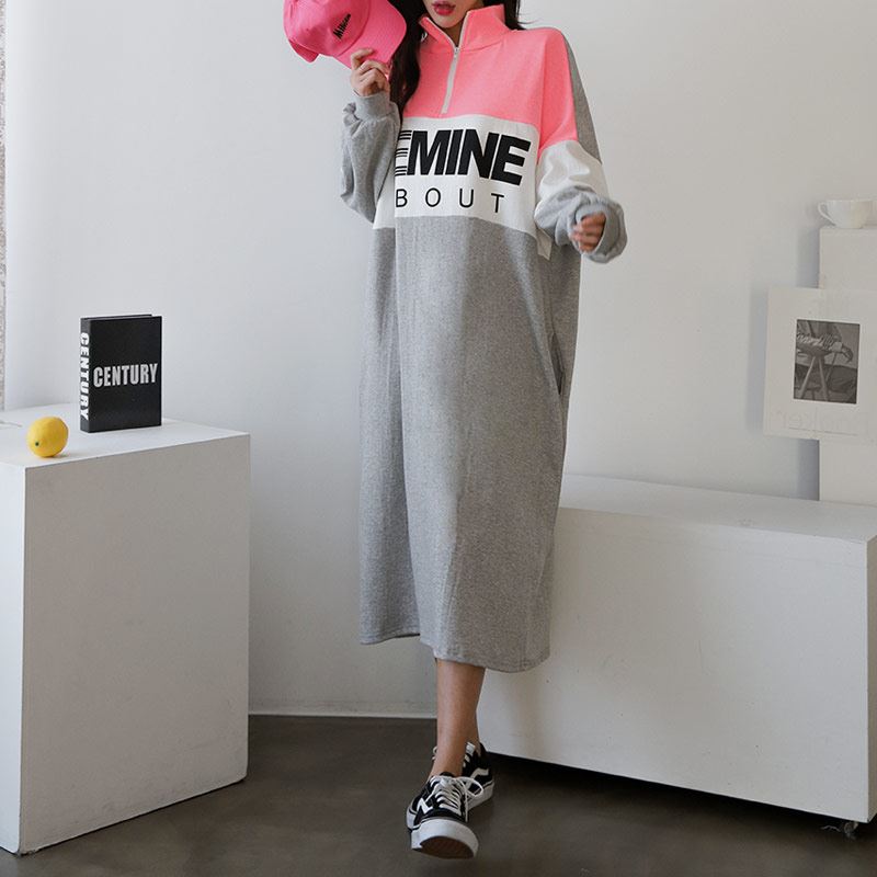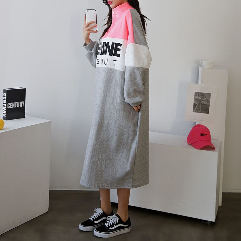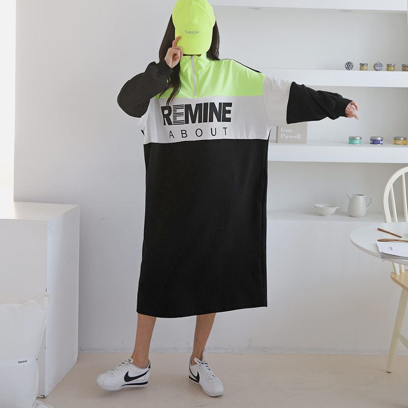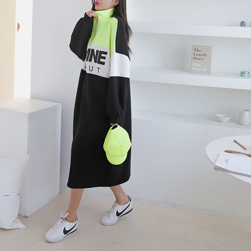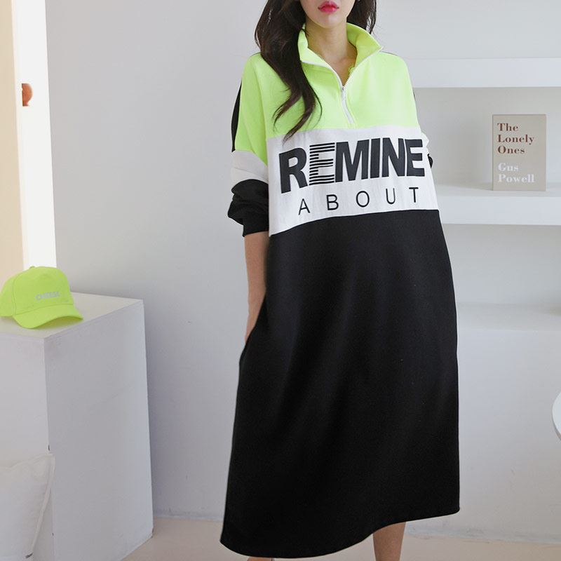 • 여성 가을 아노락 롱 원피스 형광 컬러