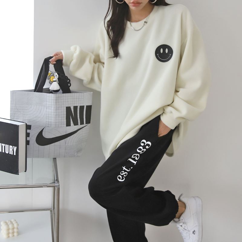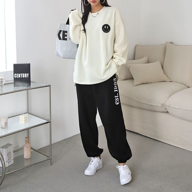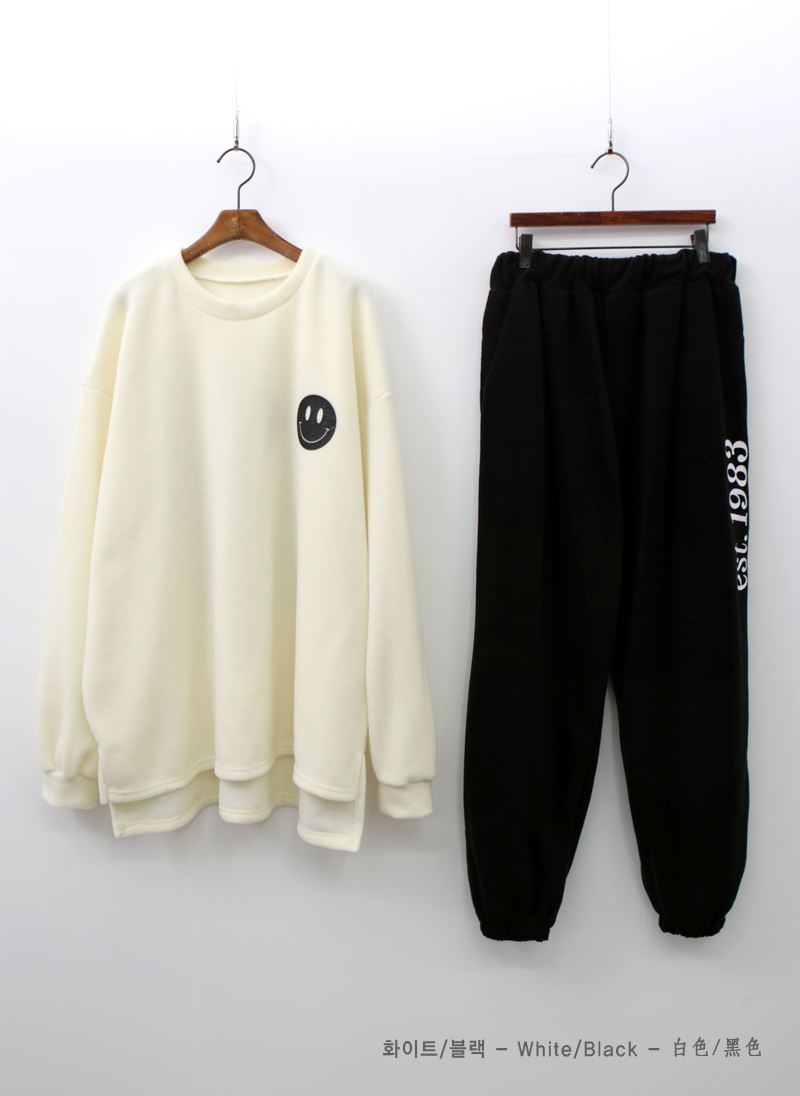 맨투맨 세트는 도톰한 텍스쳐의 폴라폴리스 소재로 제작되어 따뜻하고 가볍게 착용할 수 있는 제품이에요.