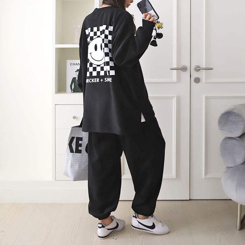 도도해닷컴 여성 겨울 트레이닝 조거 맨투맨 세트 체스 패턴