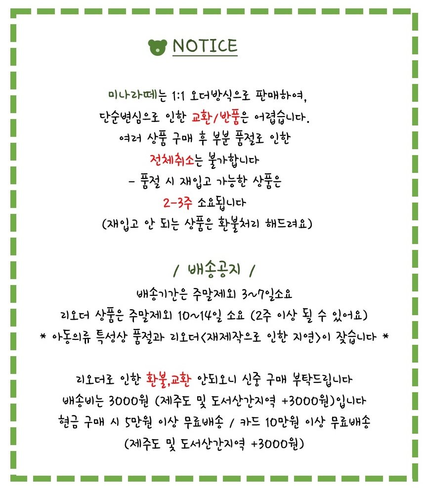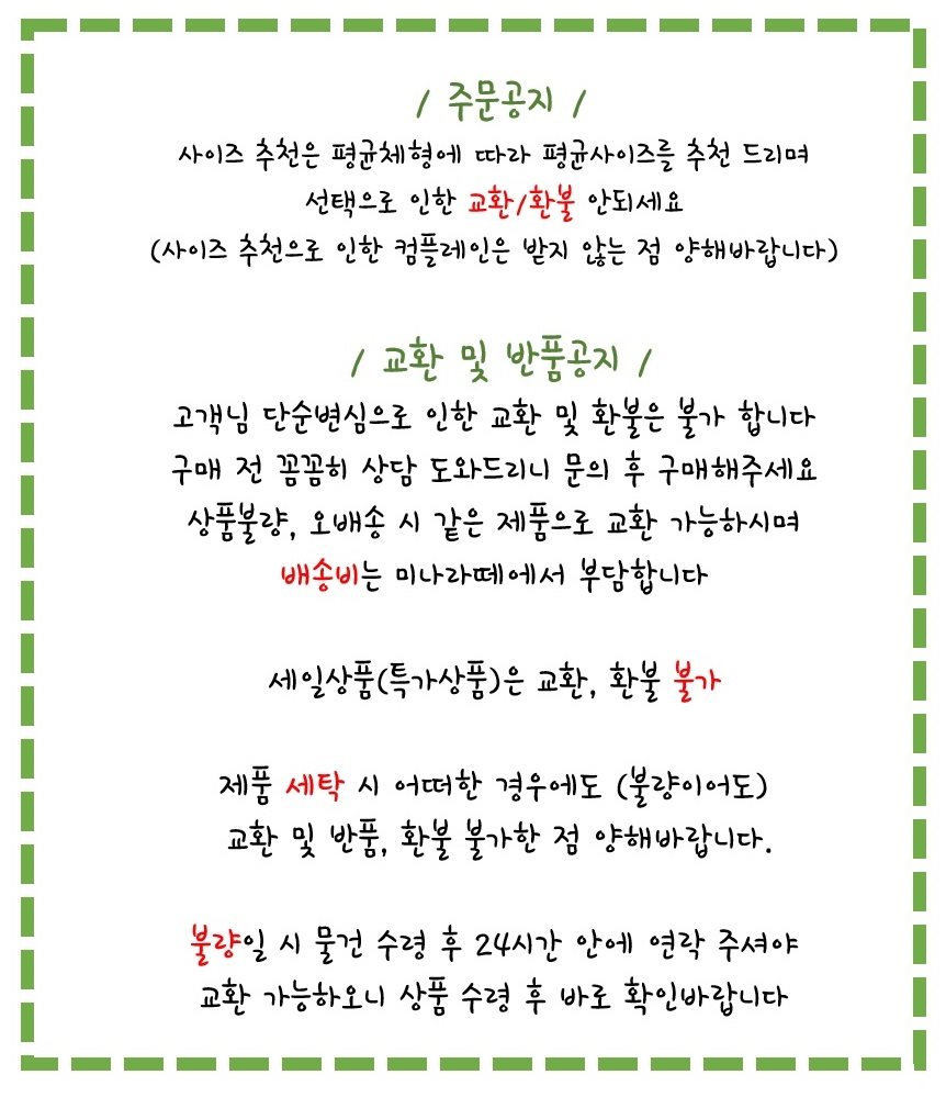 ㆍ 모니터 해상도의 차이로 인해 색상이나 이미지가 실제와 달라 고객이 단순 변심으로 교환/반품을 무료로 요청하는 경우