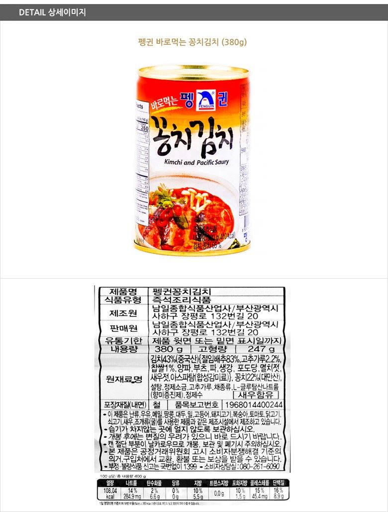 펭귄 김치꽁치 380g x 6캔 / bemeal1209 / 디비디비 / 구매하기 / 특가할인