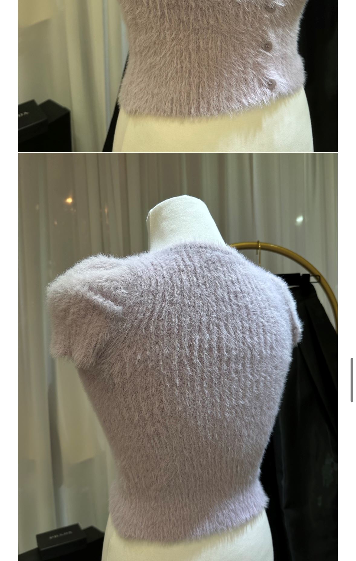 뽀송 귀여운 니트소재에 스퀘어넥 쉐입으로 여성스러움과 러블리한 무드를 전부 가져다 주는 아이템이에요