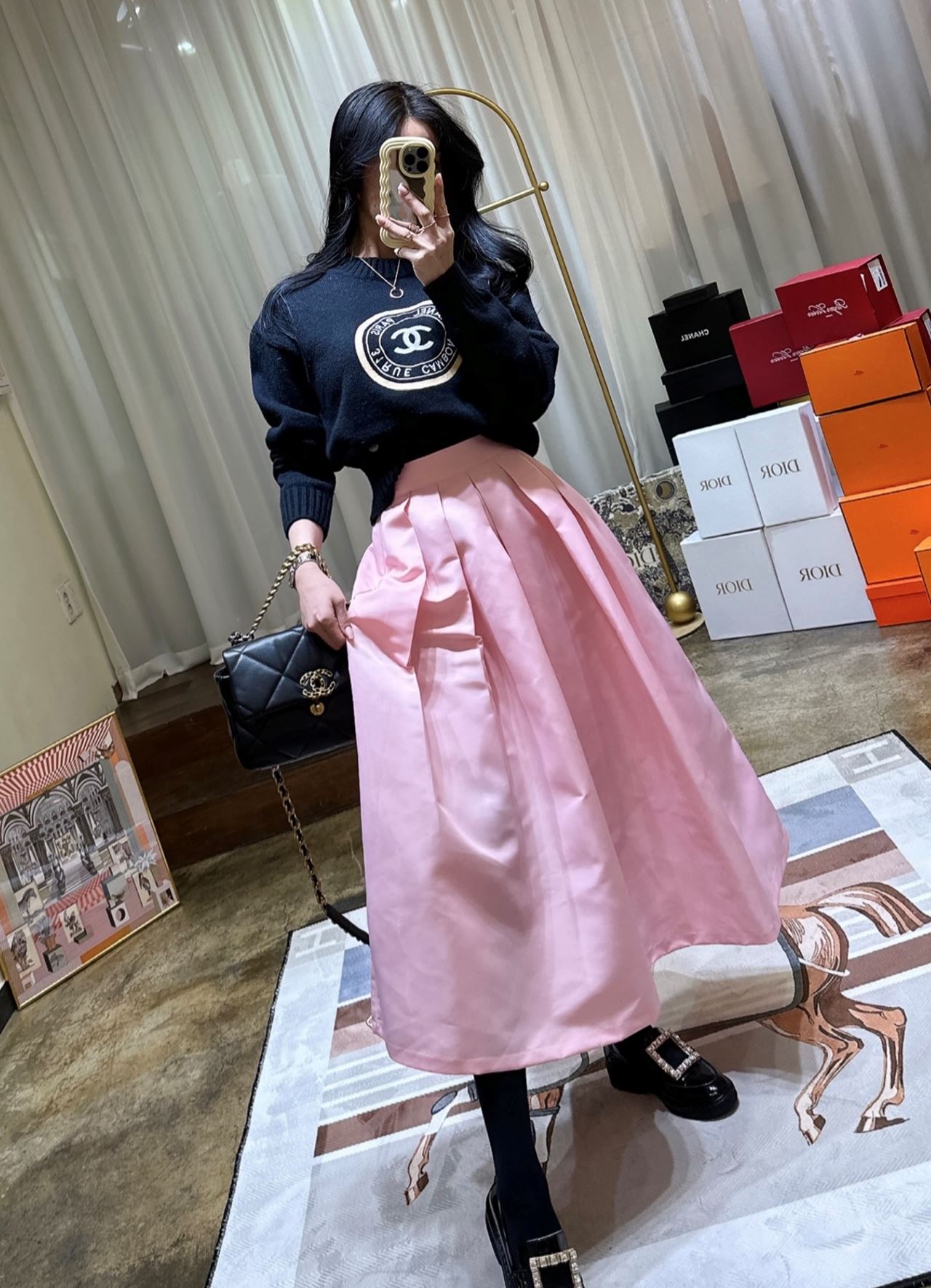 풀 라인 핀턱 핏 으로 예쁜 쉐입 연출을 도와주는 여성스러운 벌룬 스커트 봄 신상 스커트에요
