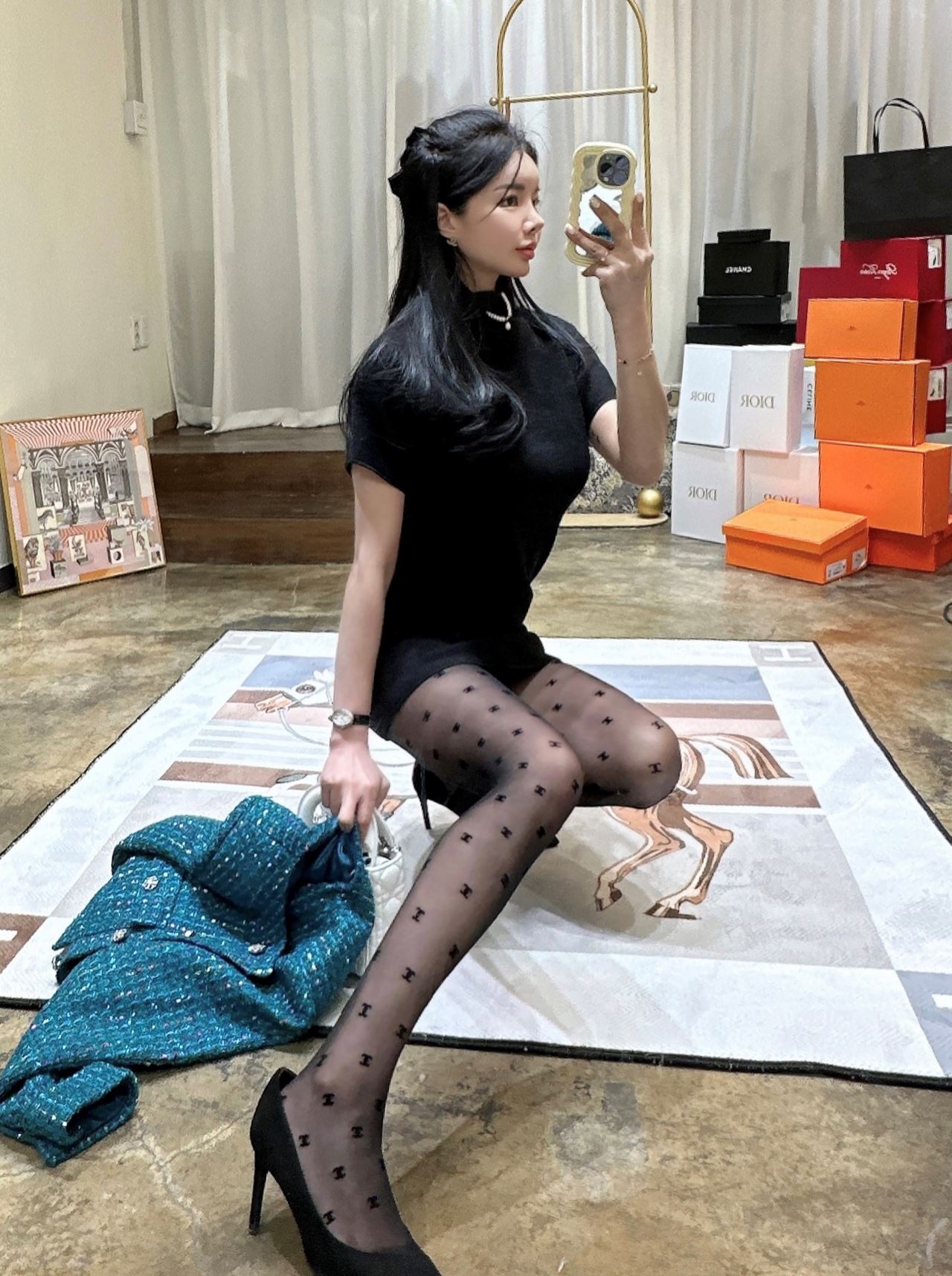 얇아서 흐물 거리는 소재가 아니라 탄탄하게 핏을 딱 잡아주어 더욱 예뻐보이는 바디라인을 만들어 주었어요