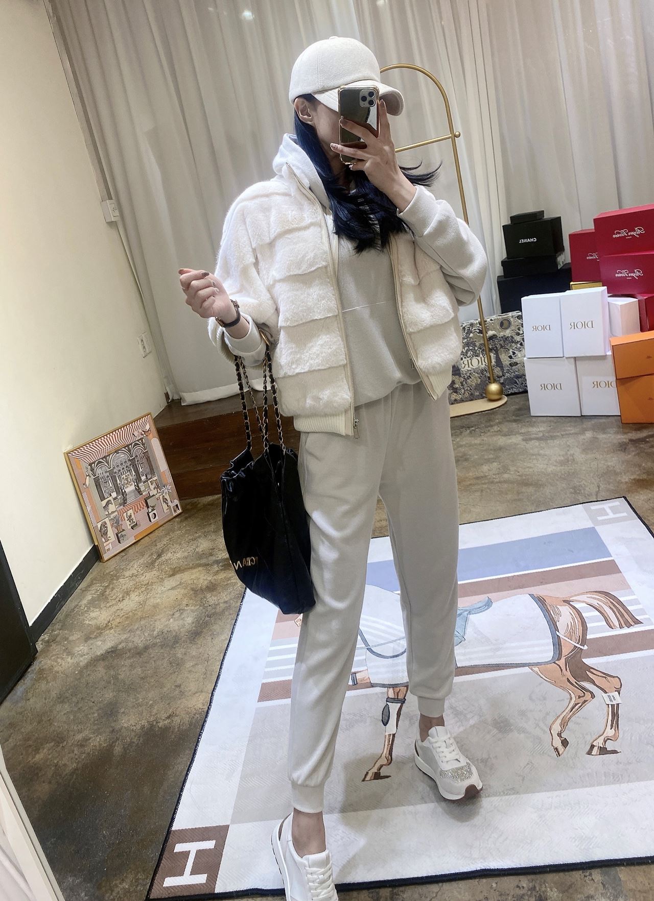 지금부터 즐기기좋은 셋업으로 앞으로 퍼 아우터에 매치해도 예쁠듯해요