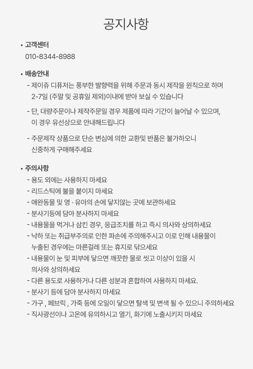 | 품목 및 제품명 | 제이쥬 스퀘어 유칼립투스 디퓨저 |