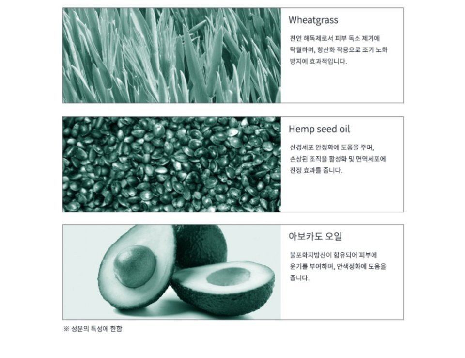 ​천연 해독제인 밀싹을 함유하여 피부의 정화작용
