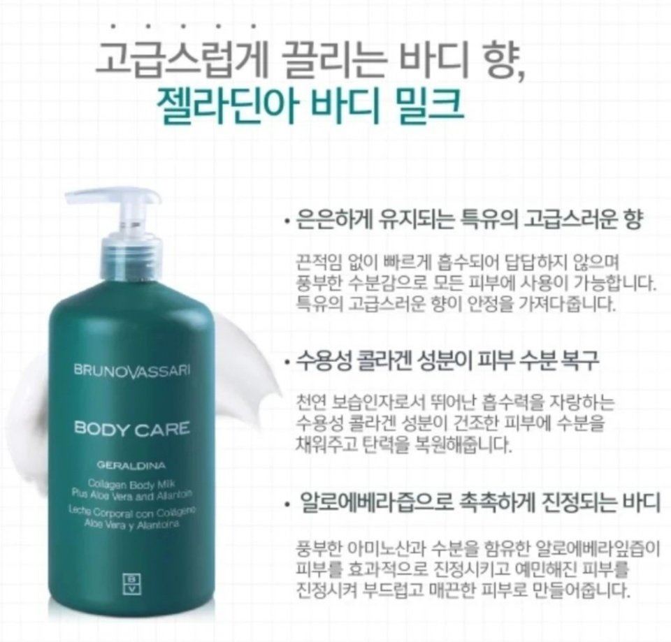 • 브루노바사리 젤라딘아 바디밀크 500ml (수용성 콜라겐이 듬뿍 수분 & 탄력 )