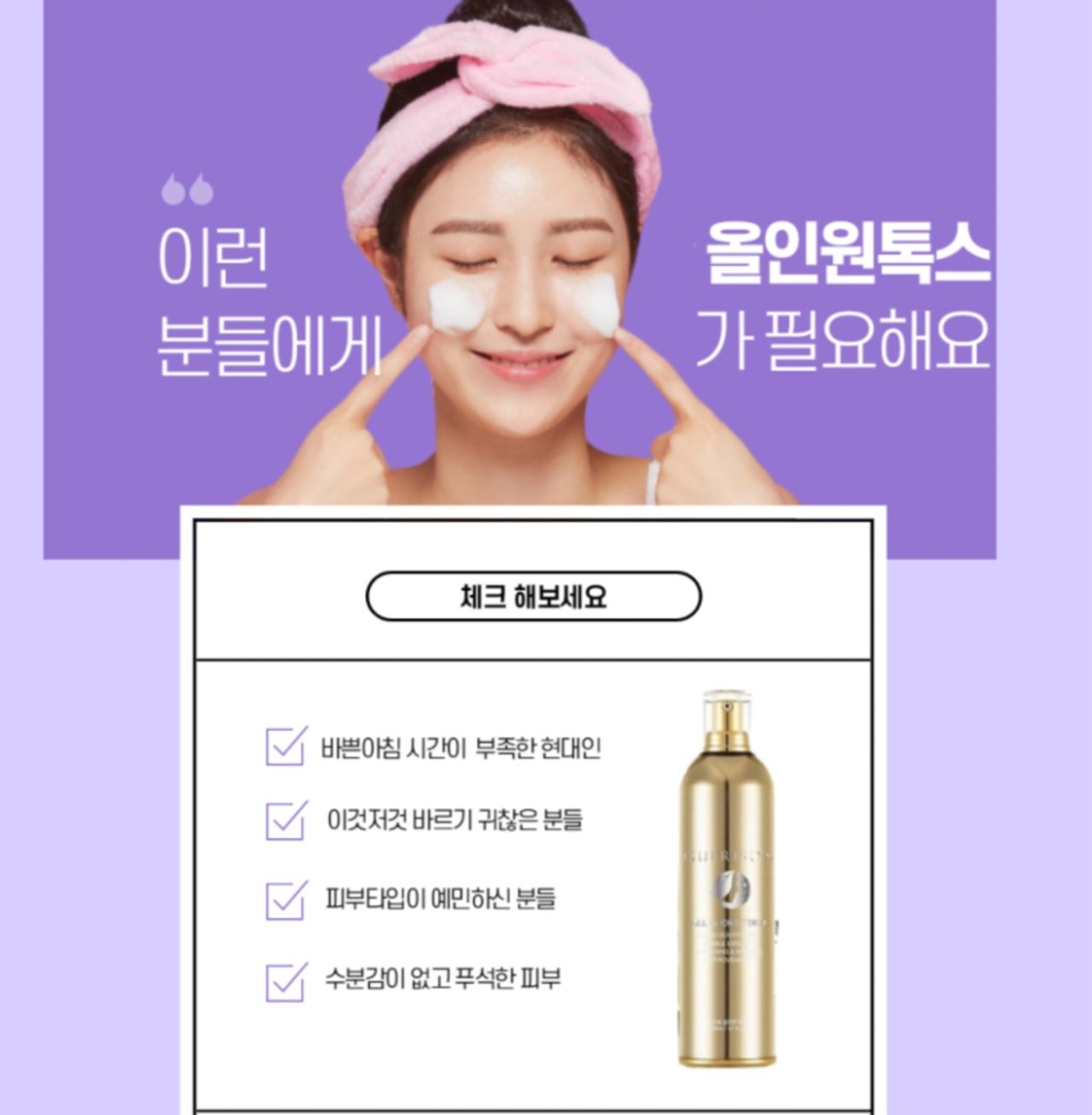 • 산소버블로 올인원 톡스 (토너+에센스 +영양크림 +로션 +아이크림을 하나로 )