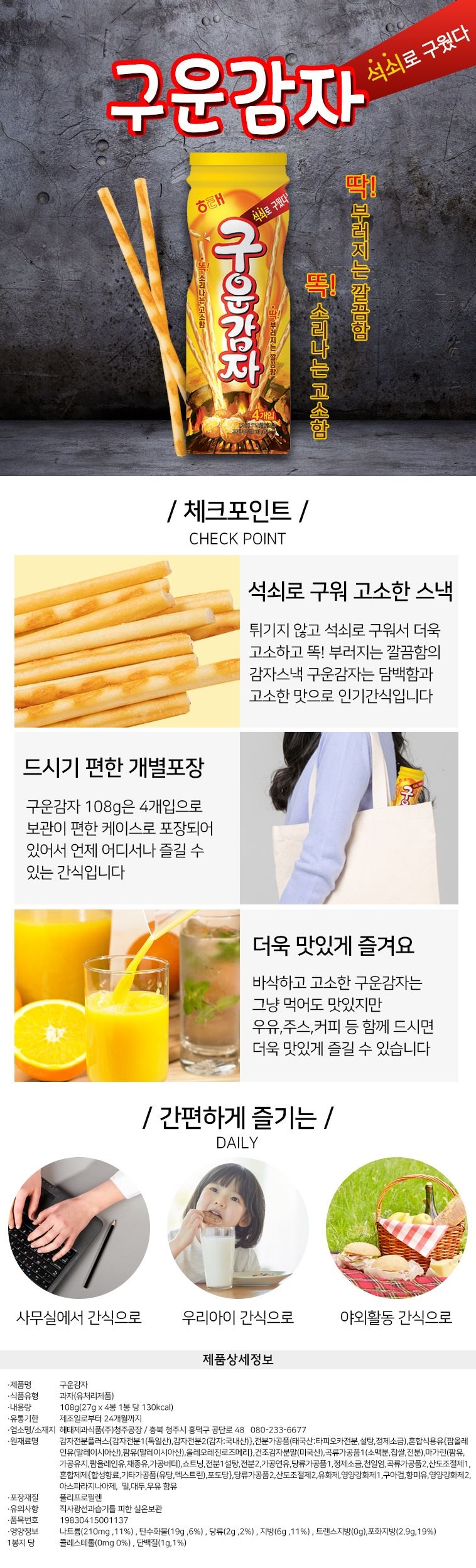 해태제과 구운감자108g x 6통