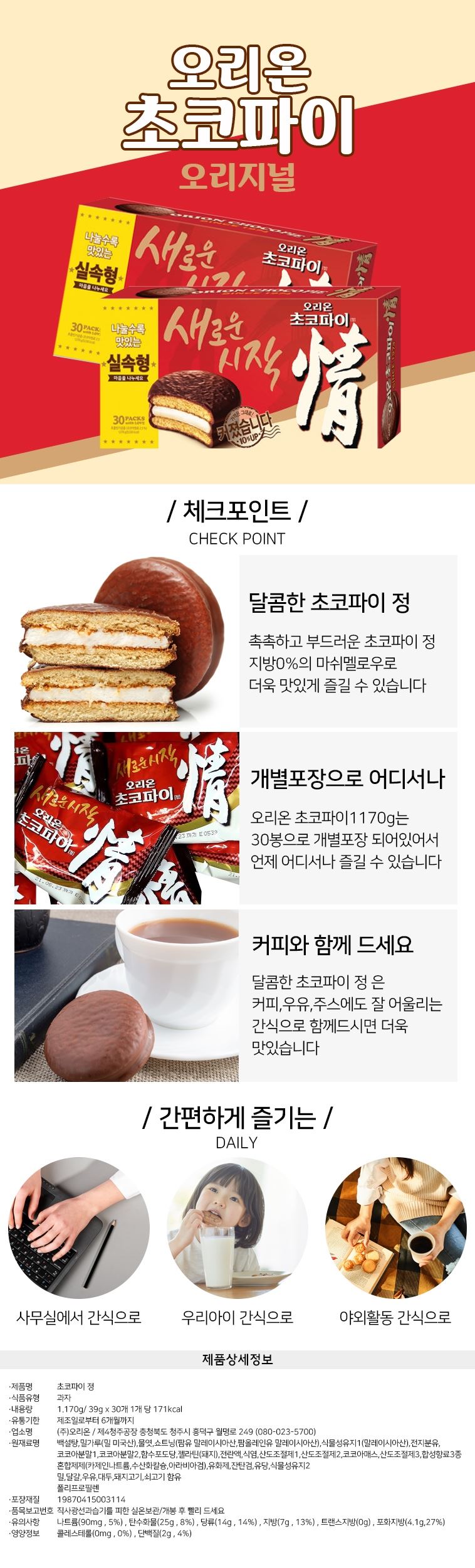 오리온 초코파이30봉(1,170g) x 3곽 / 온라인대장님의 스토어 / 디비디비 / 구매하기 / 특가할인