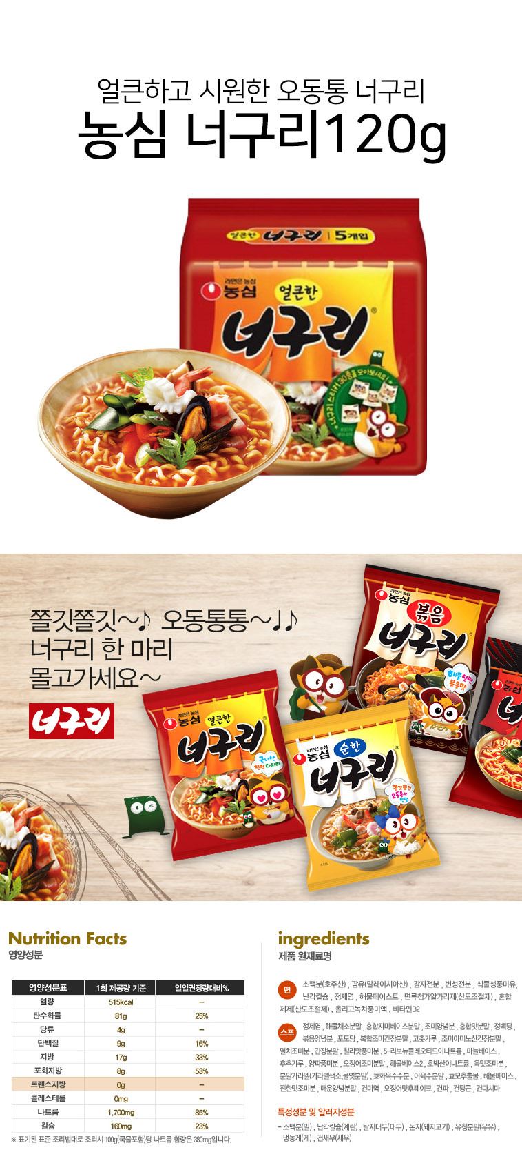 • 농심 너구리120g(5개입) x 8번들(1박스)