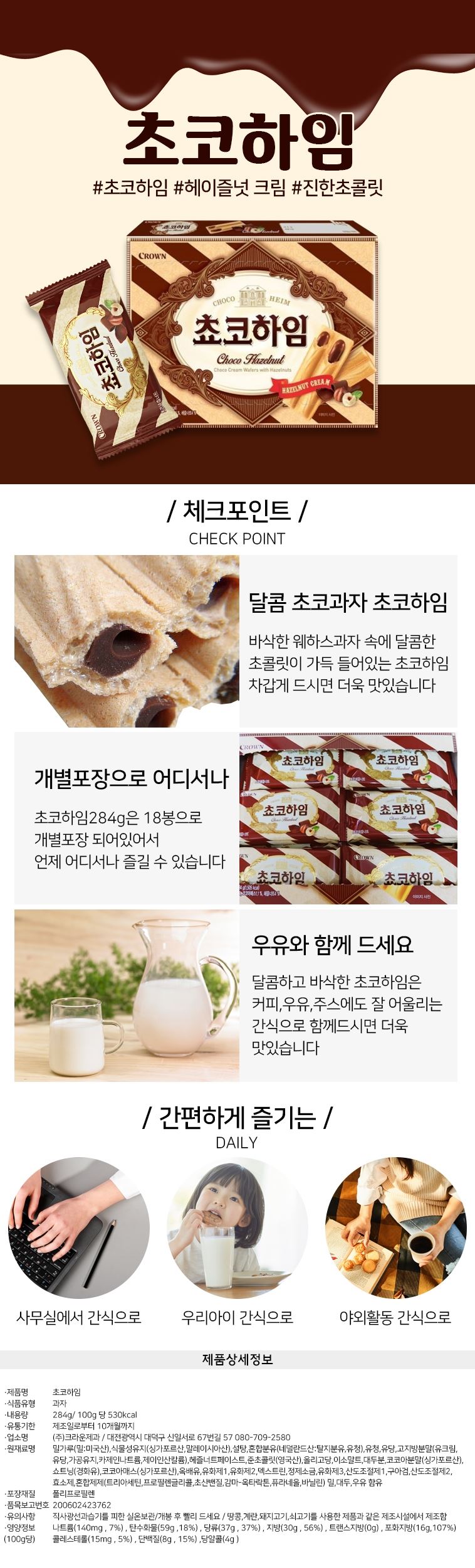 크라운제과 쵸코하임284g x 5개입 / 온라인대장님의 스토어 / 디비디비 / 구매하기 / 특가할인
