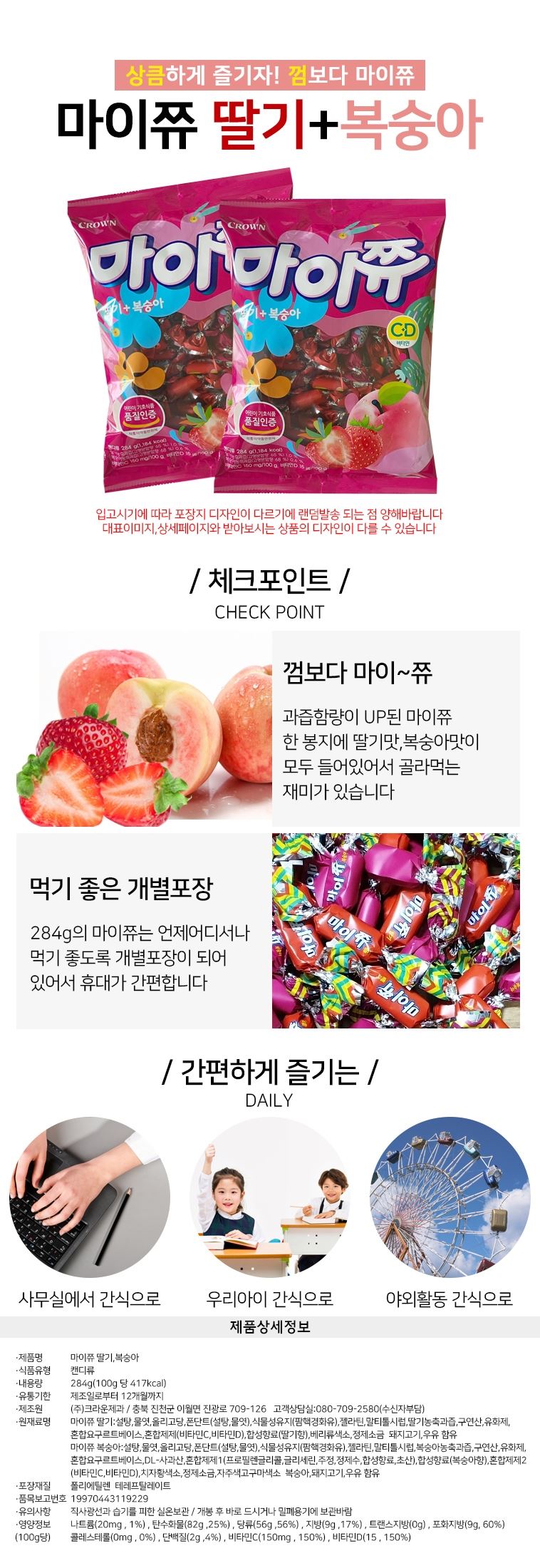 크라운제과 마이쮸 딸기+복숭아 284g x 10봉(1박스) / 온라인대장님의 스토어 / 디비디비 / 구매하기 / 특가할인