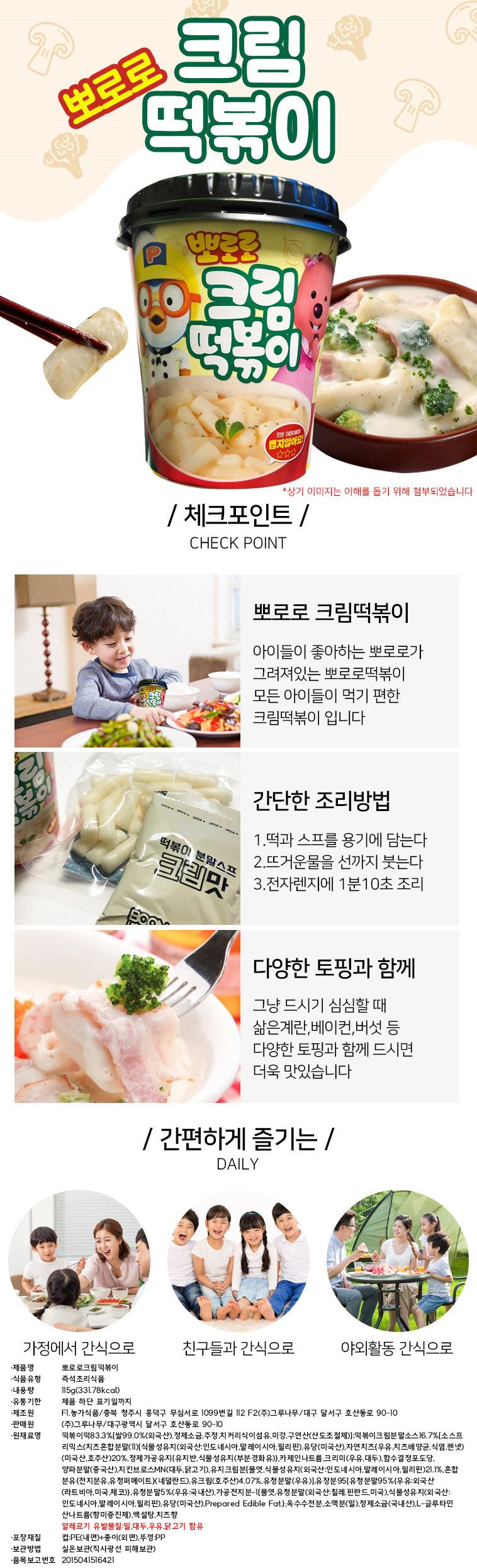 • 뽀로로 떡볶이(크림맛)115g x 4컵