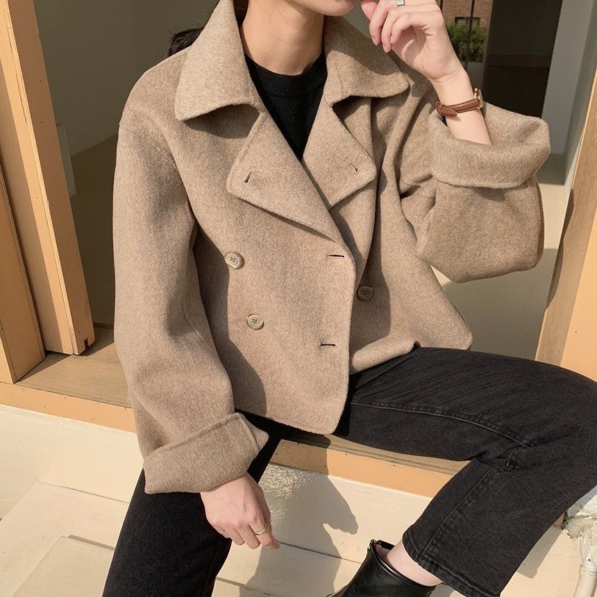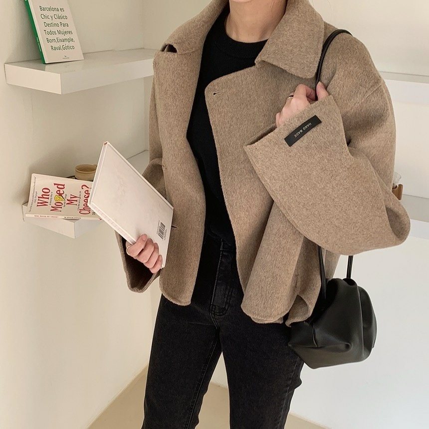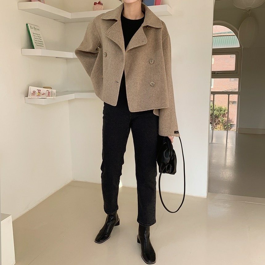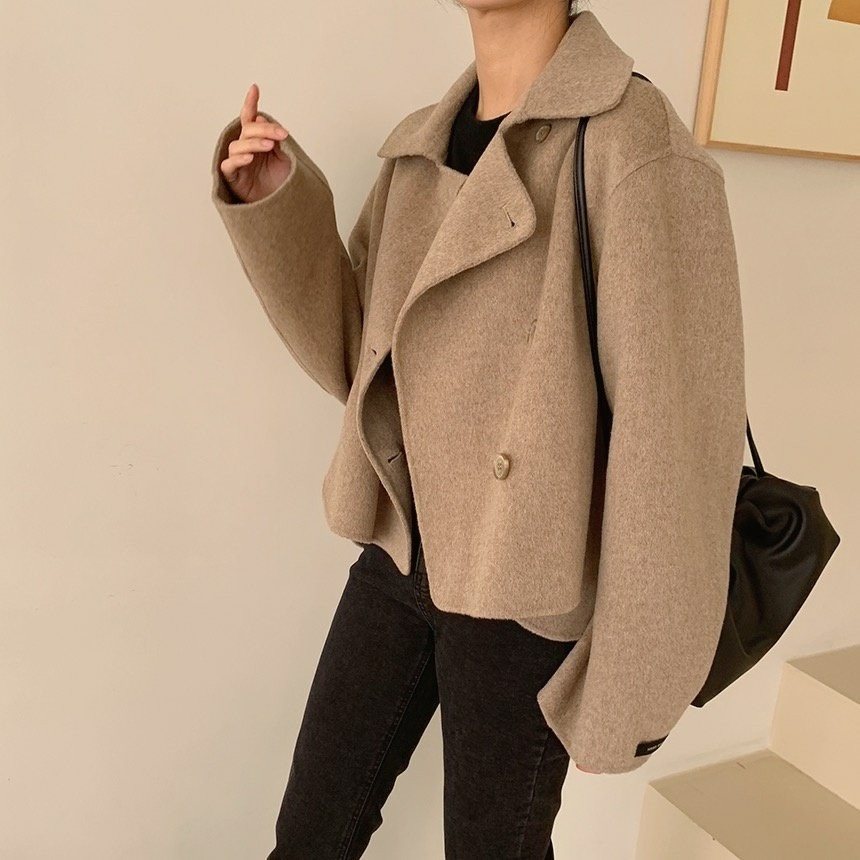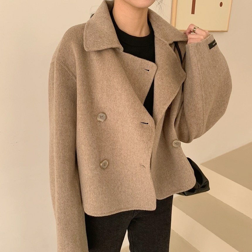 울 100% 핸드메이드 숏 더블 자켓