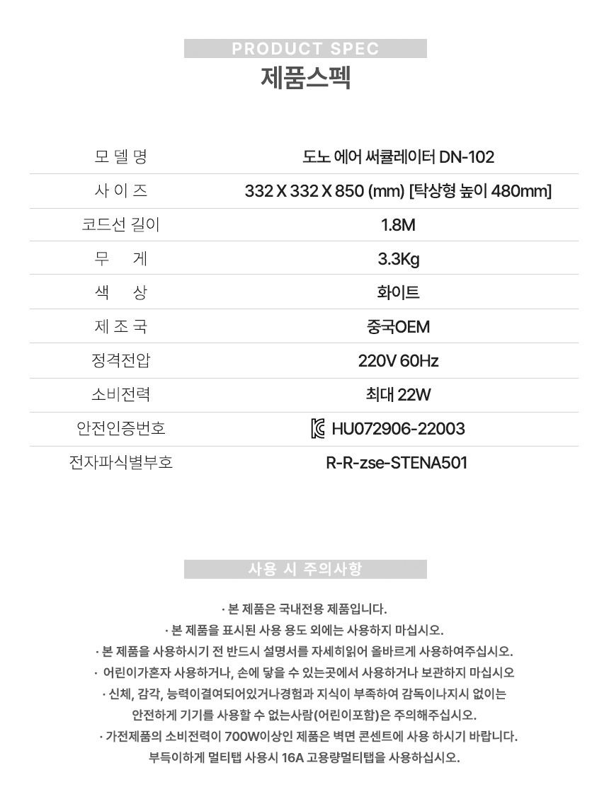 도노 에어 써큘레이터 DN-102 / 도노몰 / 디비디비 / 구매하기 / 특가할인