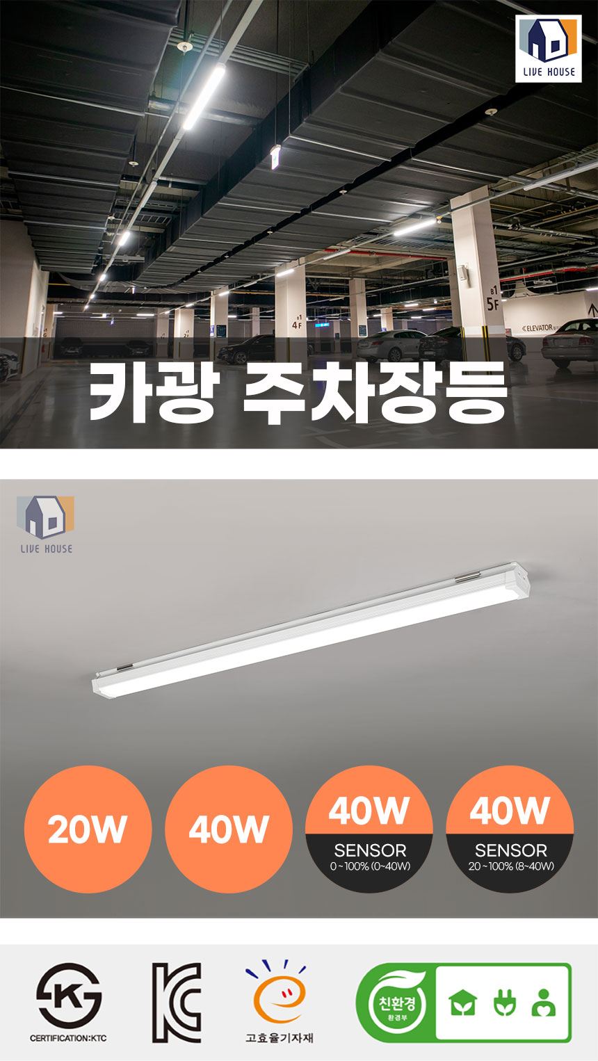 카광 인테리어 국산 LED 주차장등 산업조명 20w 40w