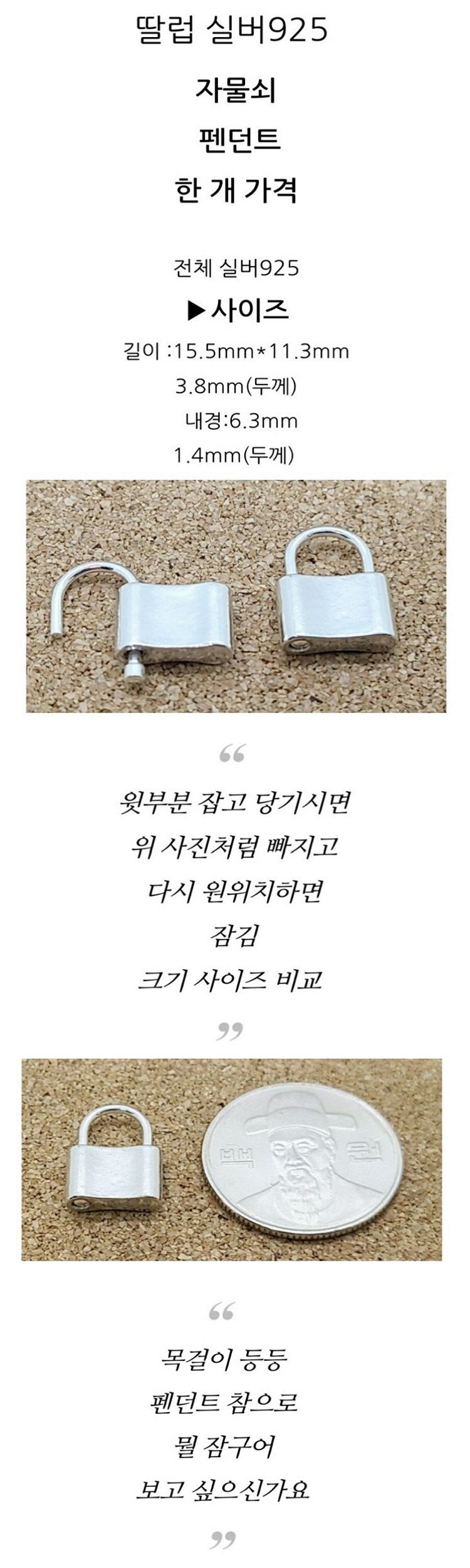 • 딸럽 실버925 자물쇠 펜던트 목걸이 팔찌 귀걸이 만들기 재료 DL2778