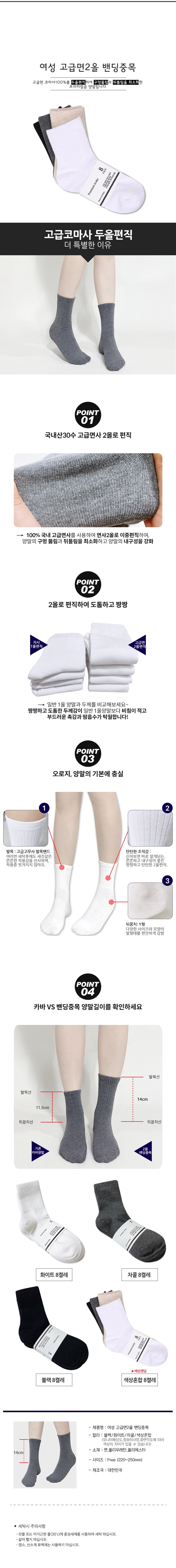 [당일출고] 8켤레 여성 프리미엄 면사 2올 밴딩 중목양말