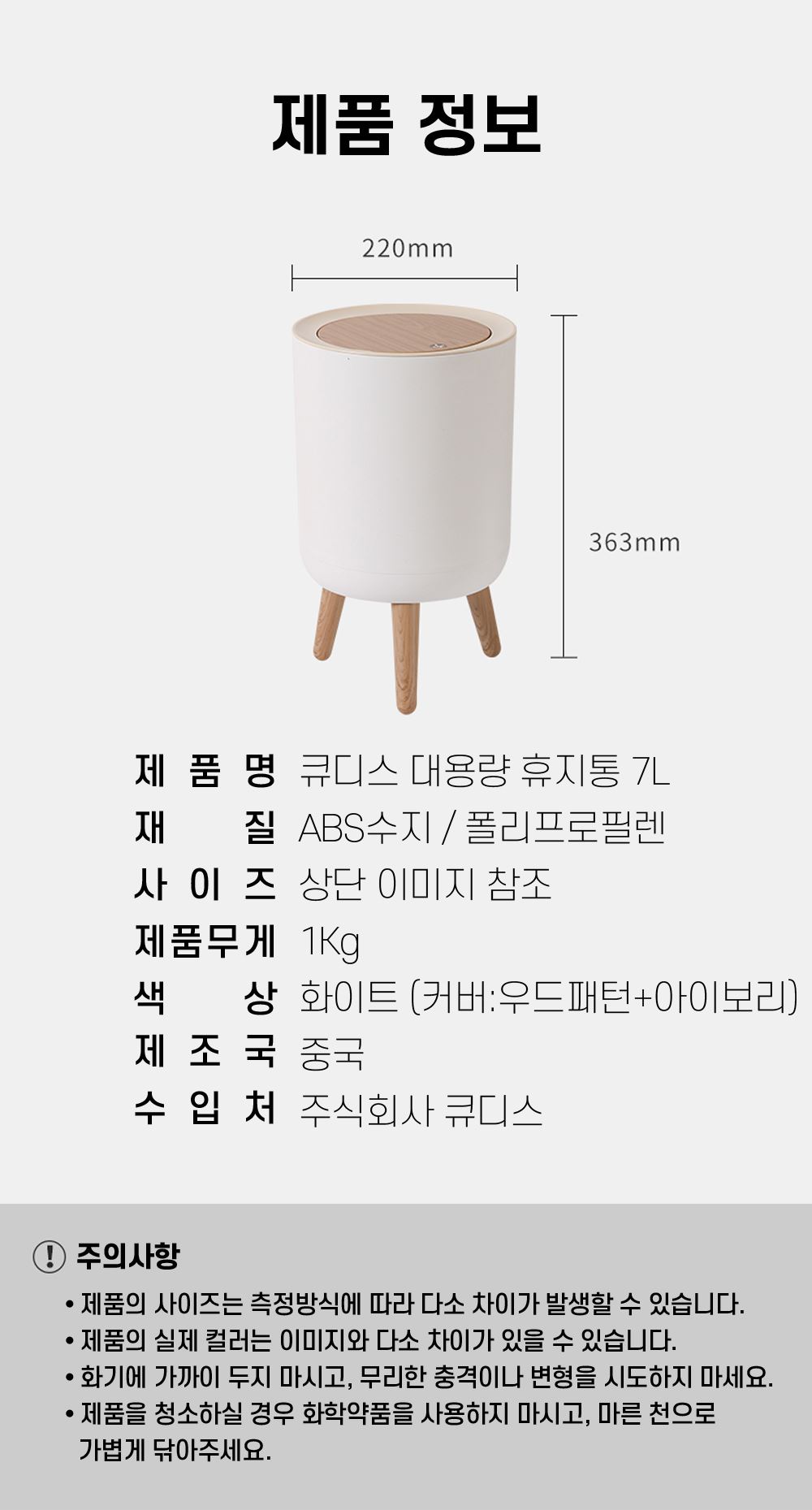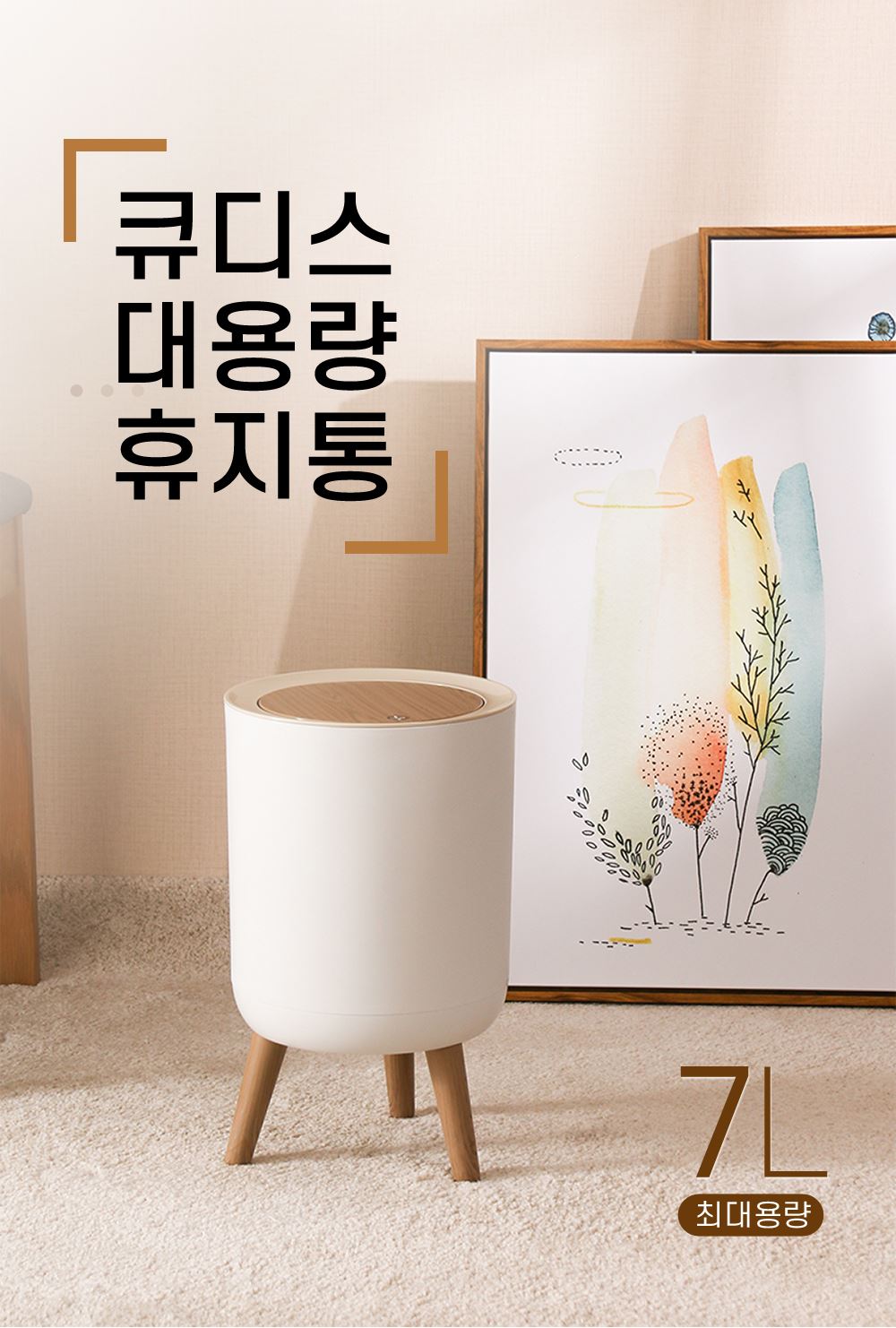 • 큐디스 인테리어 휴지통 원터치 가정용 화장실 주방 쓰레기통 7L