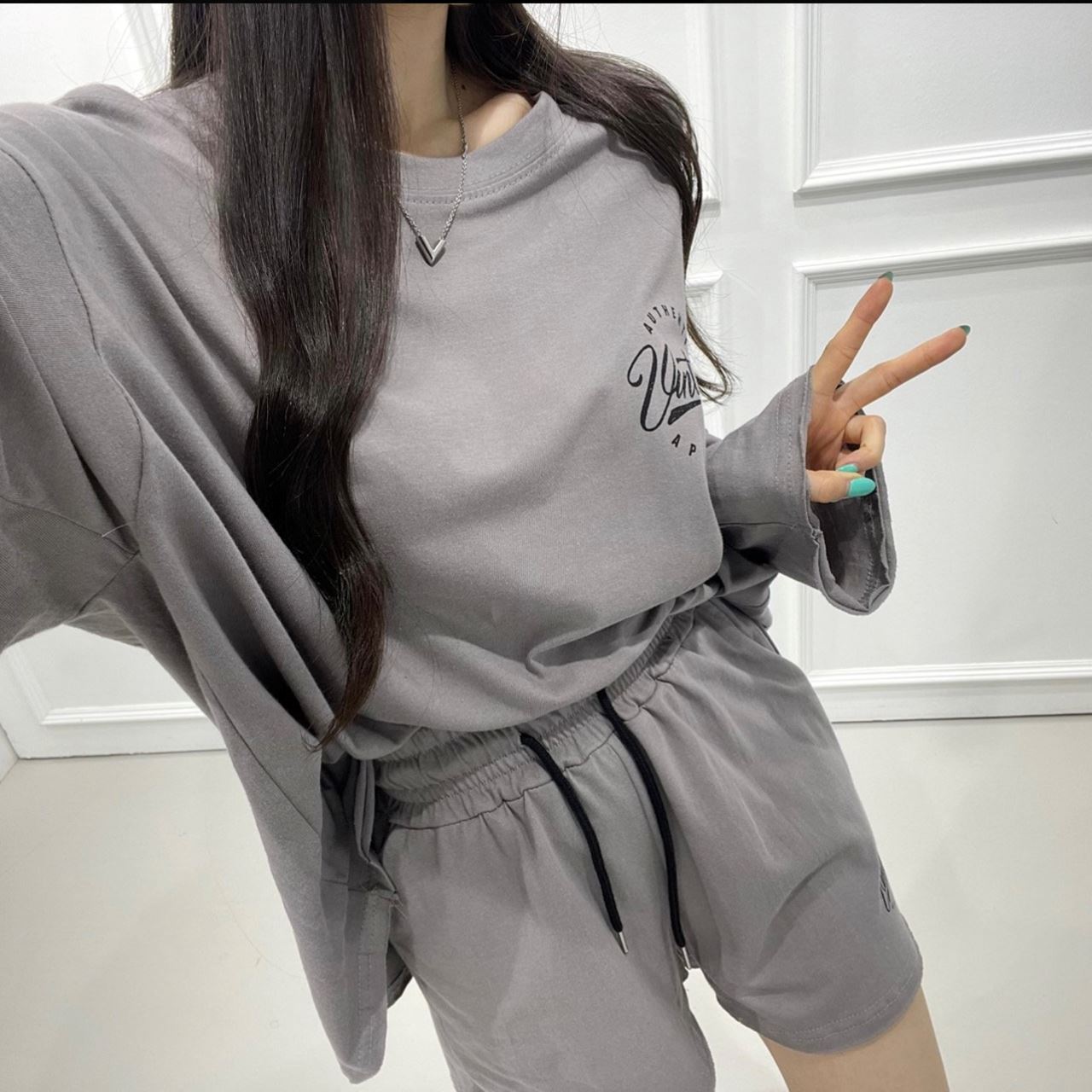 • 키치티치 오버핏 간절기 꾸안꾸 동네 마실룩 맨투맨 + 반바지 세트