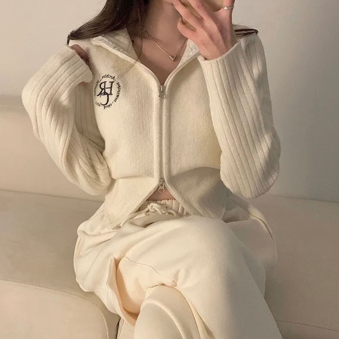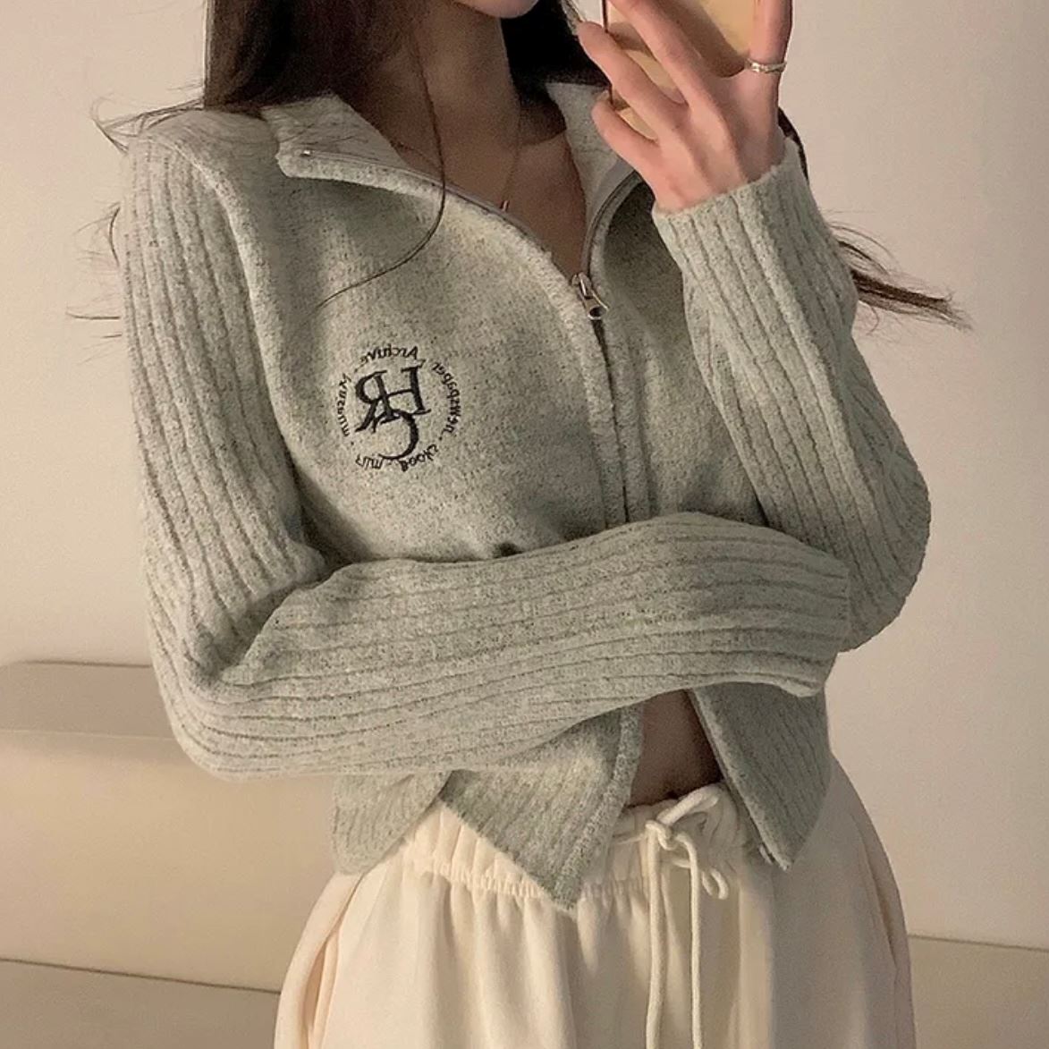 힙한 하이틴 무드까지 연출되는 니트집업이에요,