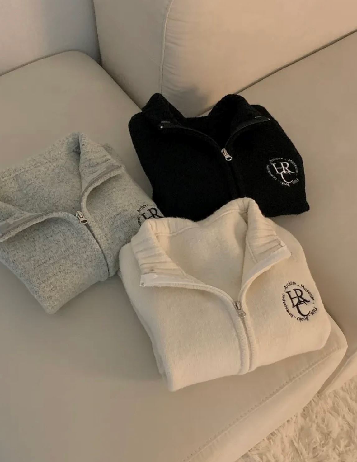• [MD소장/가을신상] 국내제작 전국 최저가 도브 써클 투웨이 자수 로고 카라 니트 집업 (3color)