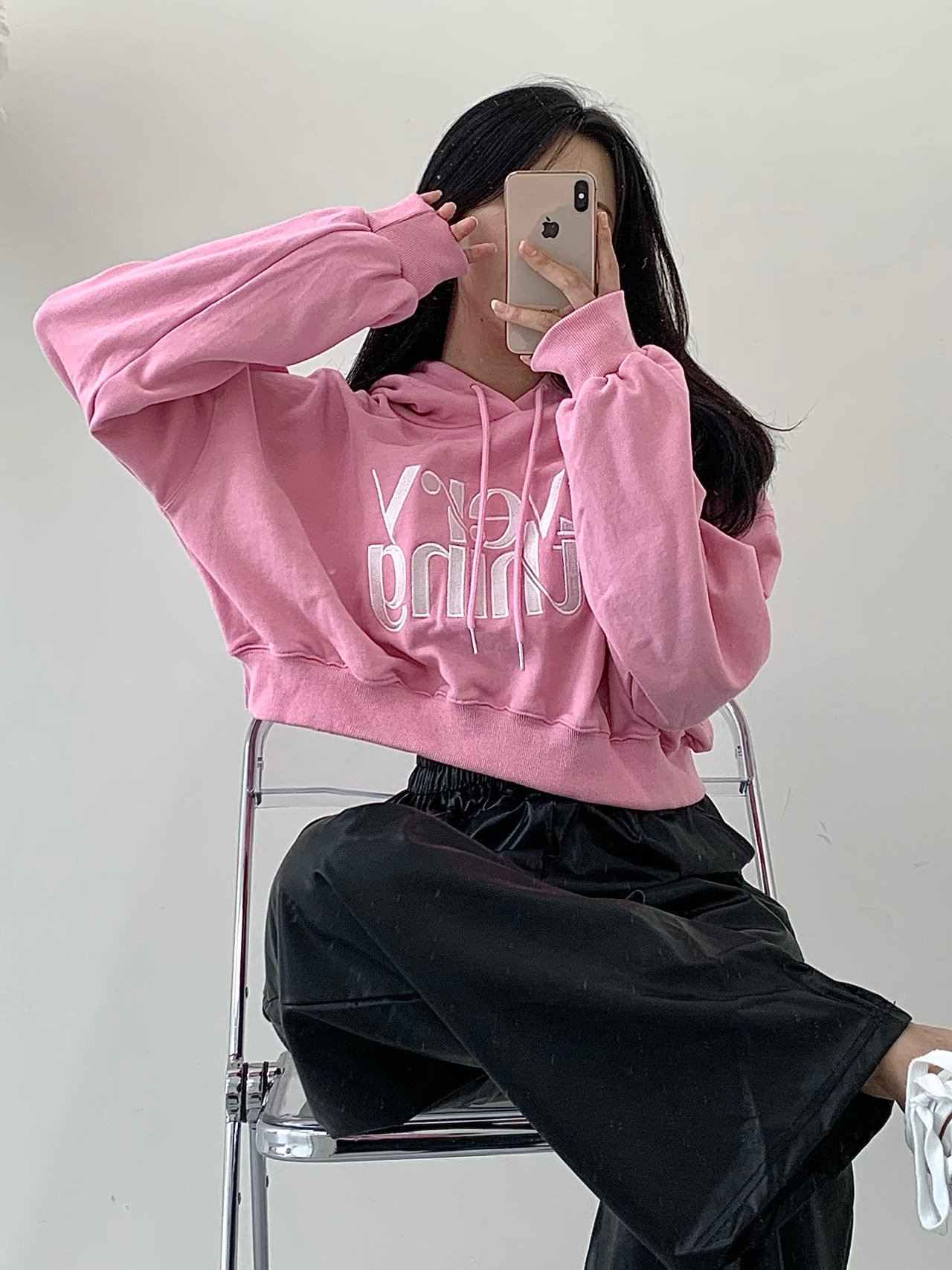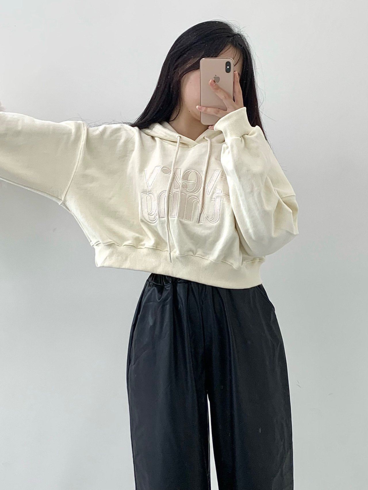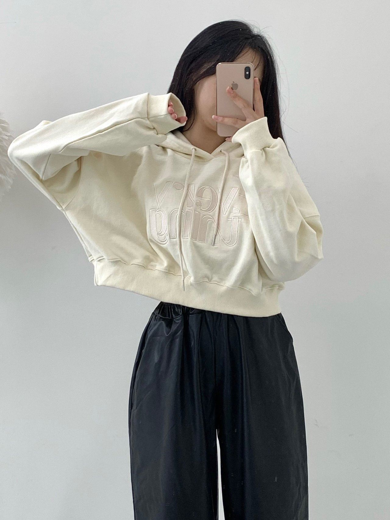 [쭈리원단/세미크롭] 실물존예 꾸안꾸 크롭 쭈리 에브리 자수 후드티 (3color)