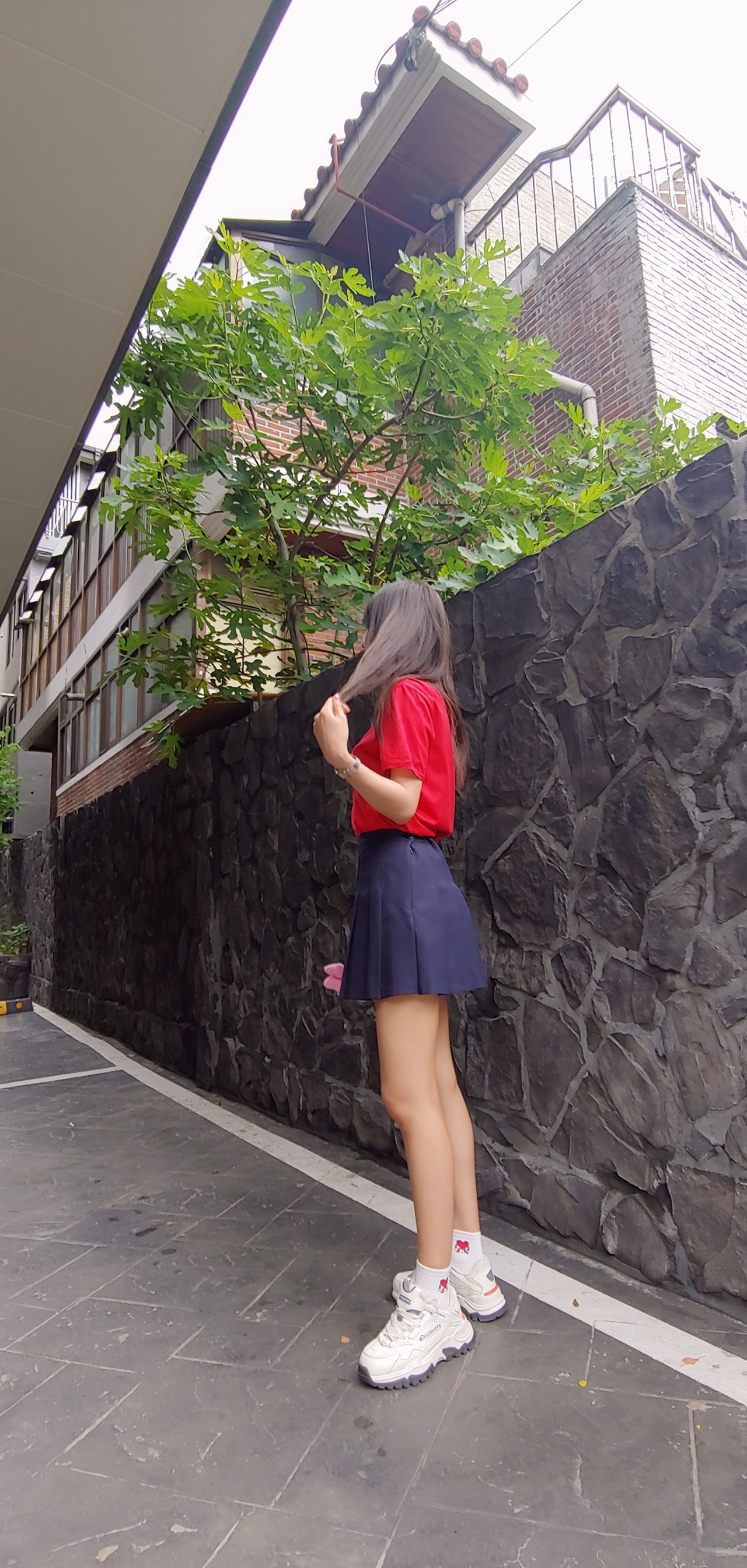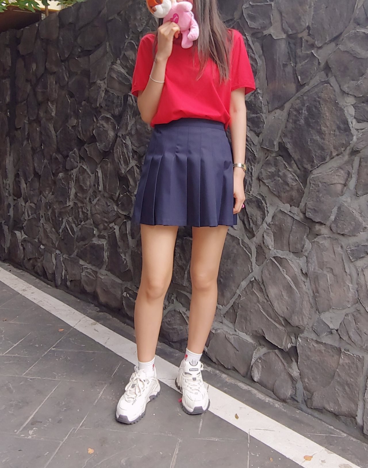 네이비 컬러의 테니스스커트 등과 코디하면 스포티한 느낌으로 예쁘게 입으실 수 있어요.☺