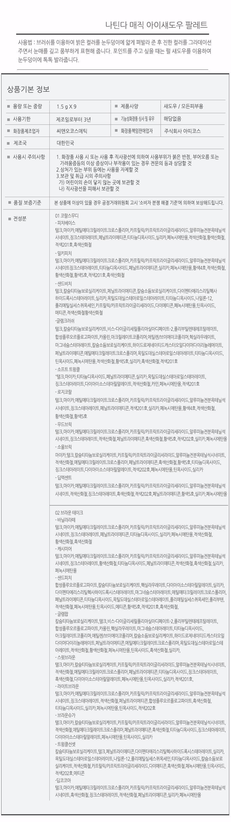 나틴다 매직 아이섀도우 팔레트 2종1.5gX9/아이팔레트/쉐도우/아이즈 / NATINDA / 디비디비 / 구매하기 / 특가할인