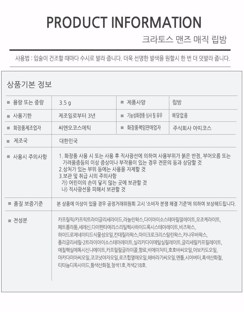 크라토스 맨즈 매직 립밤3.5g/혼합색상/발색 립밤,립센스,립케어,립메이크업,영양보습,남성립밤,남자립스틱,반