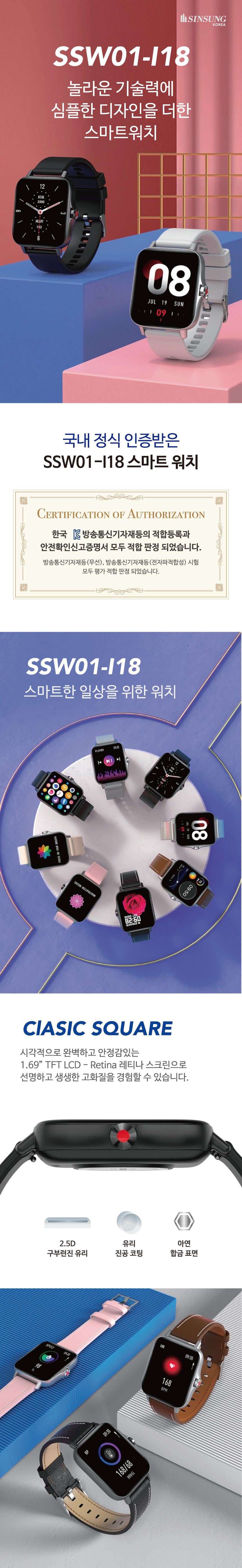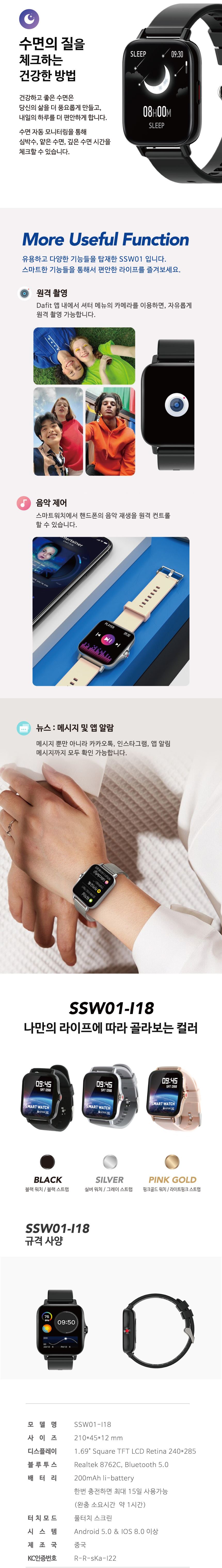 KC인증 가성비스마트워치 블루투스손목시계 혈압측정스마트워치 SSW01-I18