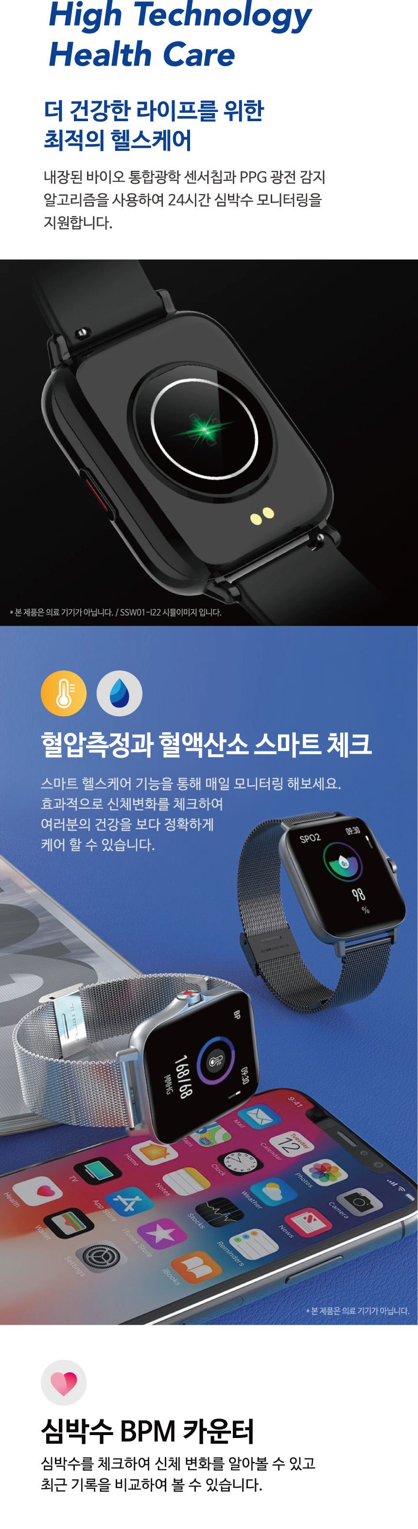 • KC인증 가성비스마트워치 블루투스손목시계 혈압측정스마트워치 SSW01-I18