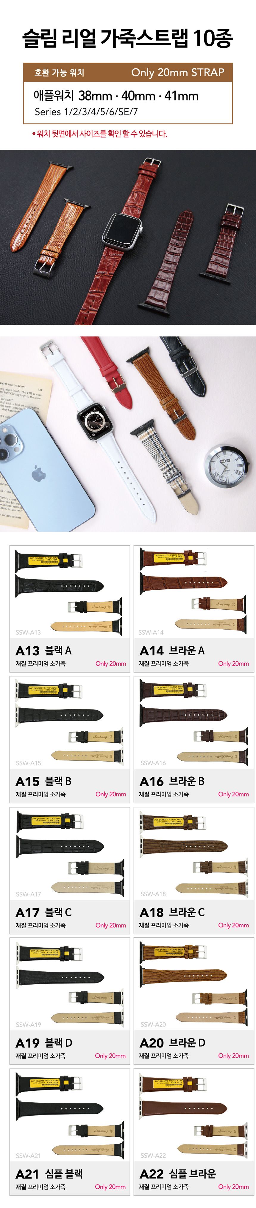 20mm 애플워치스트랩 슬림 리얼 가죽스트랩 애플워치시계줄