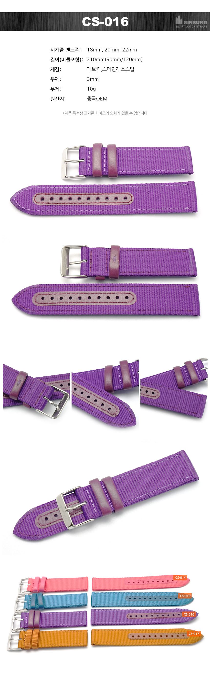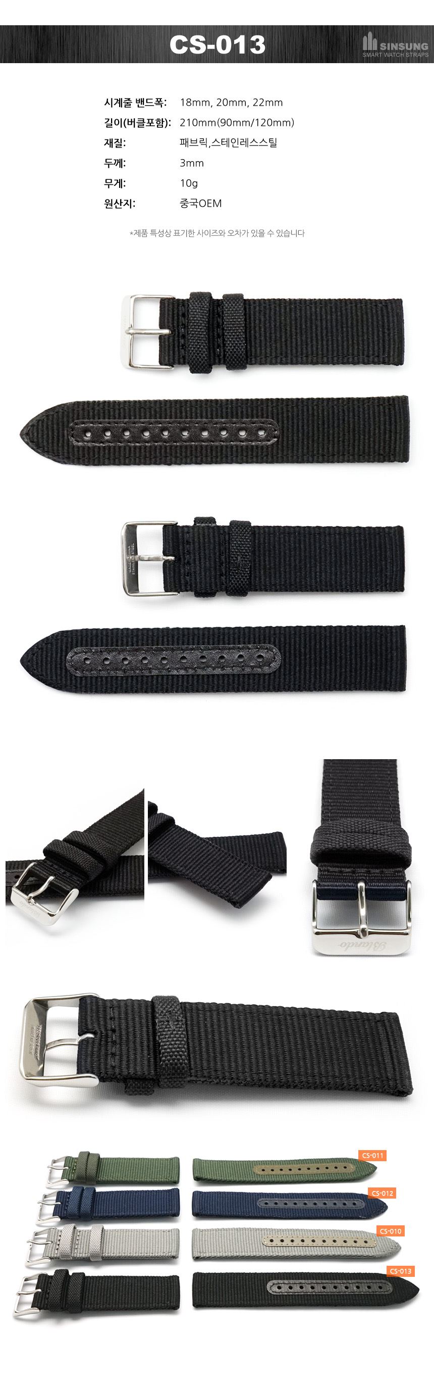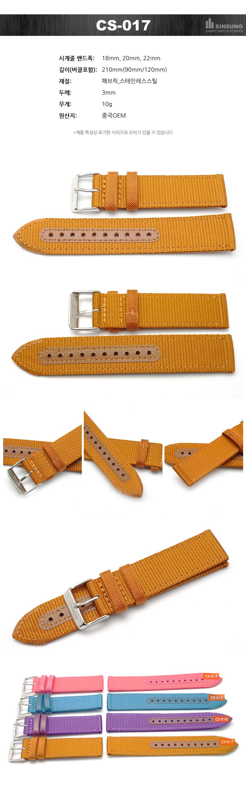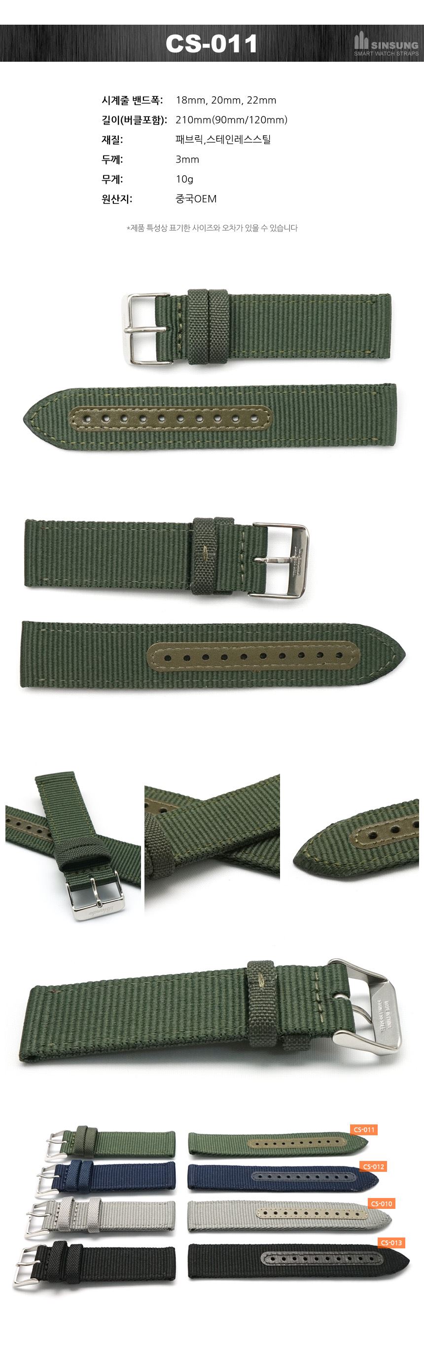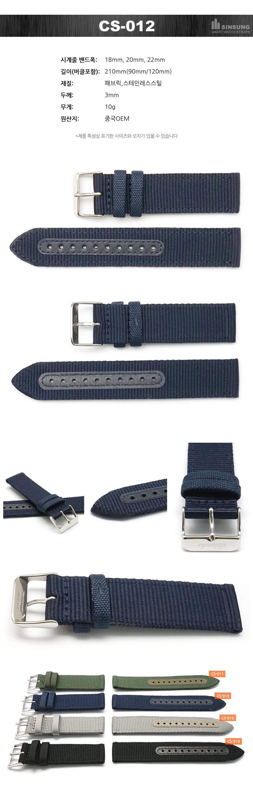아웃도어 스포츠시계 패브릭시계줄 갤럭시워치4 스마트워치 애플워치스트랩 시계핀포함 18mm 20mm 22mm