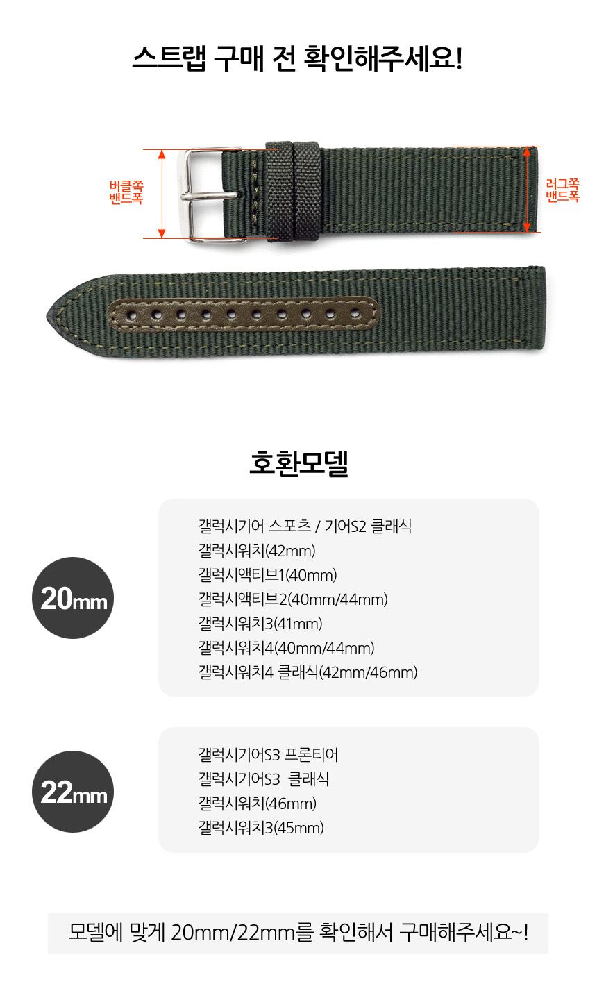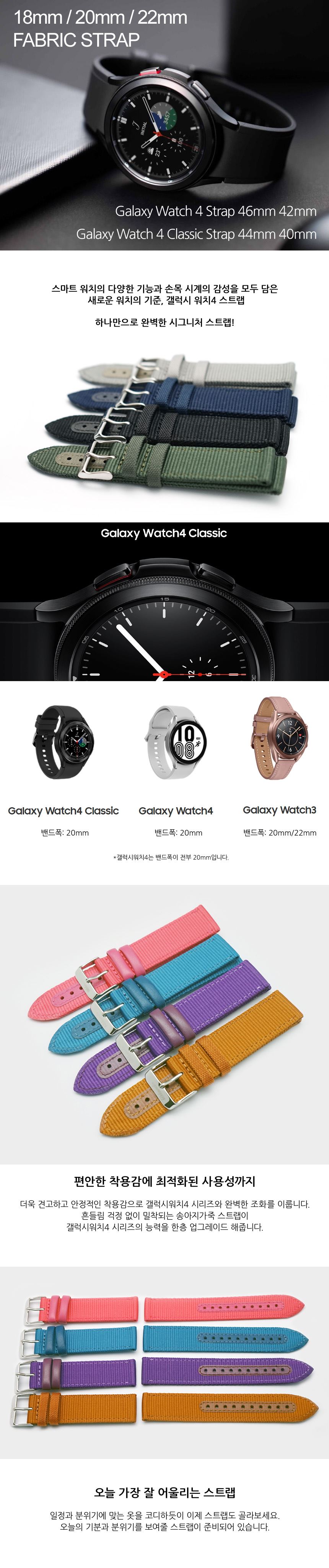 • 아웃도어 스포츠시계 패브릭시계줄 갤럭시워치4 스마트워치 애플워치스트랩 시계핀포함 18mm 20mm 22mm