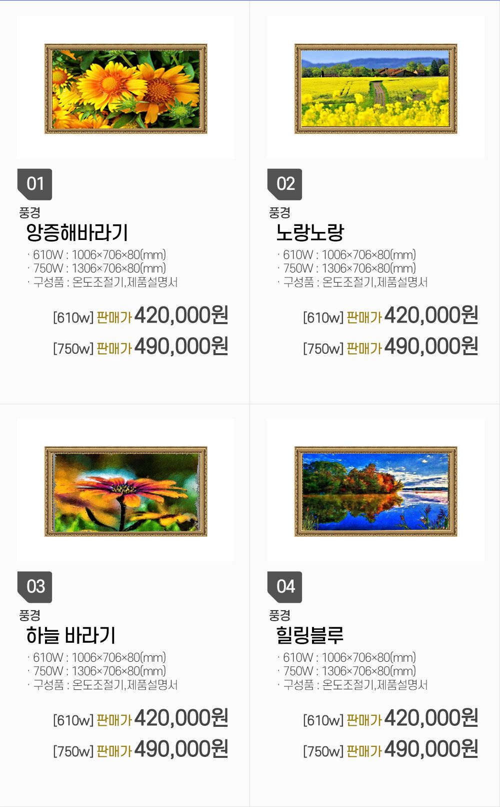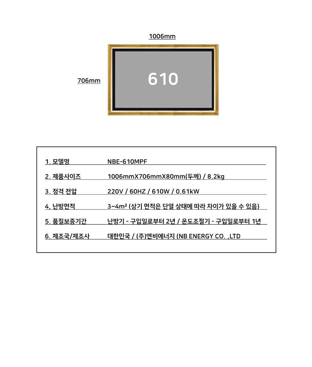 품명 및 모델명 액자난방기