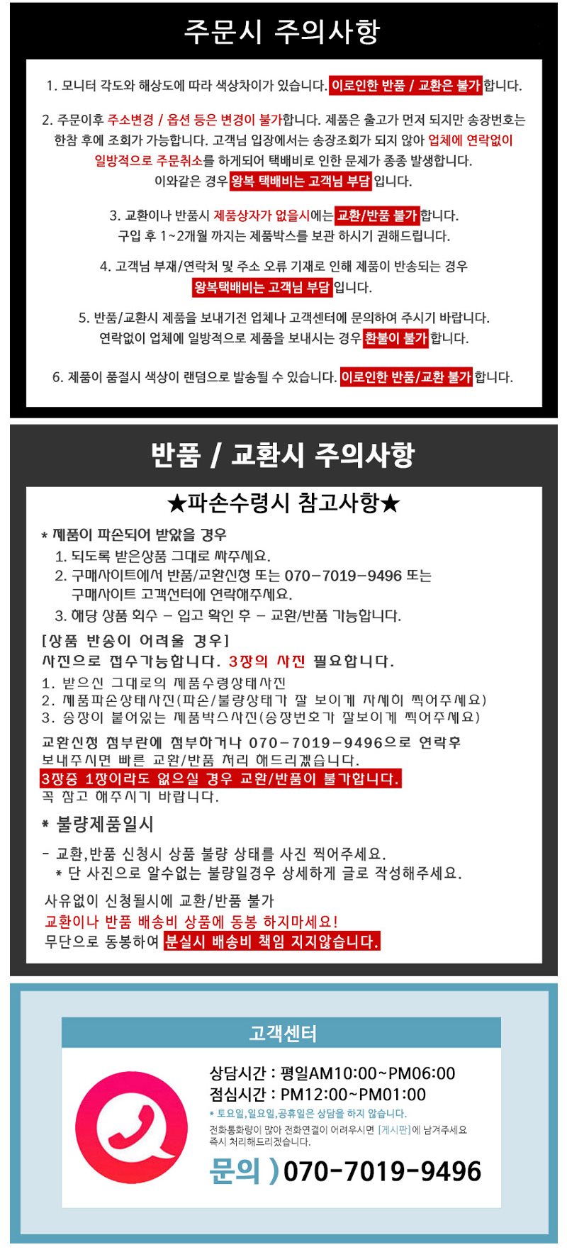 ㆍ 모니터 해상도의 차이로 인해 색상이나 이미지가 실제와 달라 고객이 단순 변심으로 교환/반품을 무료로 요청하는 경우