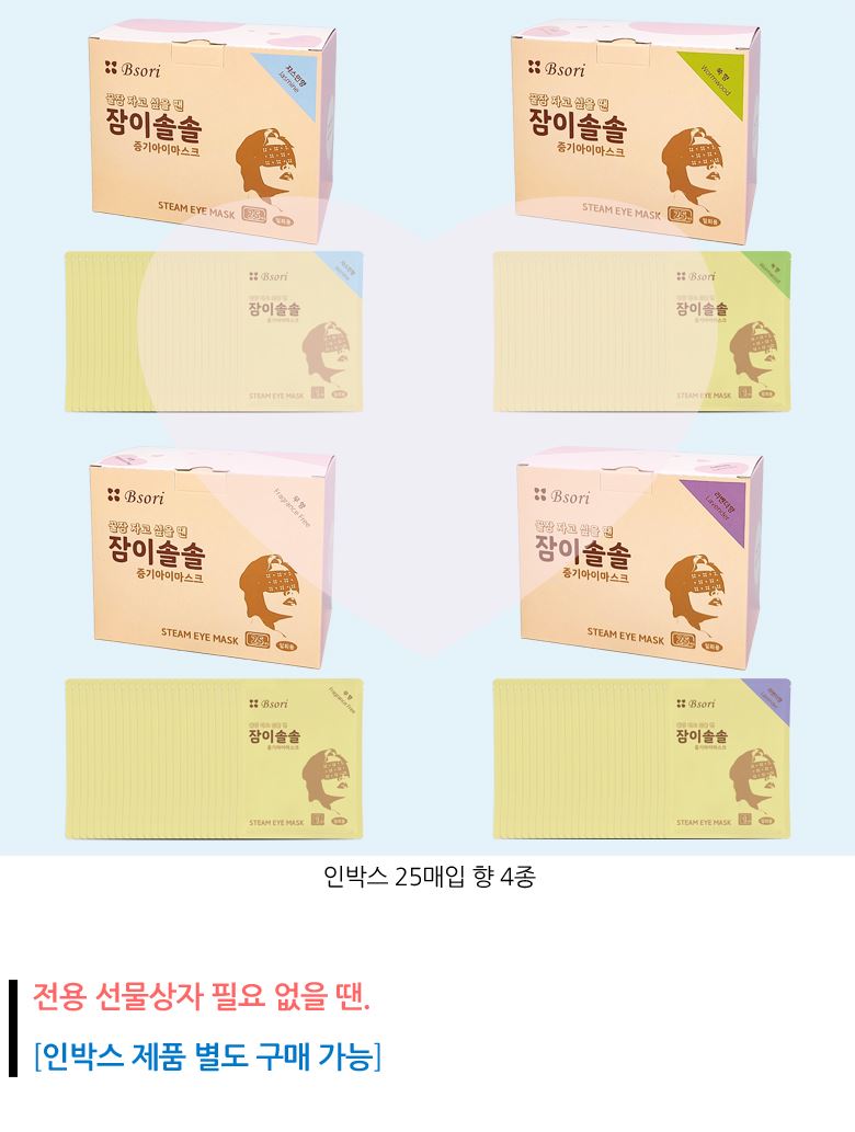 잠이솔솔 일이술술 선물세트 / 온열안대 향4종 100매 구성 / 비소리 / 디비디비 / 구매하기 / 특가할인