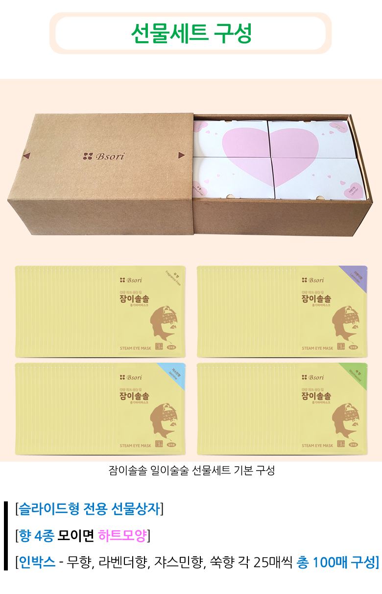• 잠이솔솔 일이술술 선물세트 / 온열안대 향4종 100매 구성